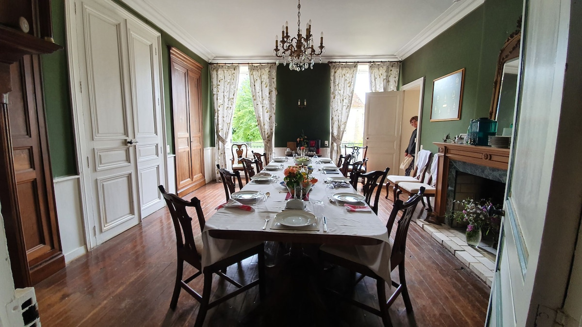 You'll love the stylish decor of this Charentaise house which is composed of a 15th century post house and a bourgeois building from 1915 located on a large completely enclosed garden, crossed by a stream. A digital code will be given to you to access the accommodation and the possibility to park your car in the yard. Shared bathroom with 2 rooms for rent. Breakfast and dinner available upon reservation Kitchen available the first town is 6 km by car (Rouillac)