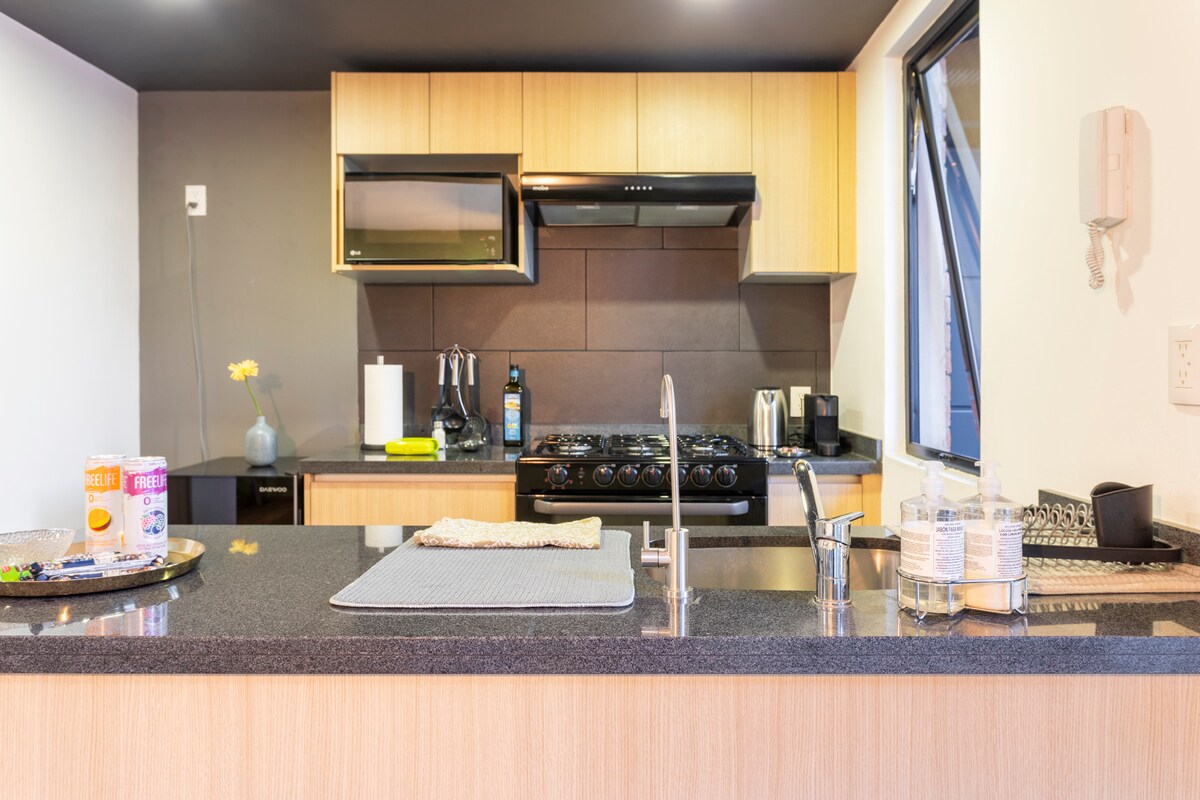 The location? Unbeatable. It’s just 2 blocks from Lincoln Park in Polanco, the most beautiful neighborhood in Mexico City. The apartment? Fantastic! It has 2 bedrooms, 2 full bathrooms, a fully equipped kitchen, a living room and a Smart TV. But the best part is its private balcony! Step outside and enjoy the breeze with a warm cup of coffee or tea. Common areas? A gym, business center, meeting room & a rooftop with a grill!