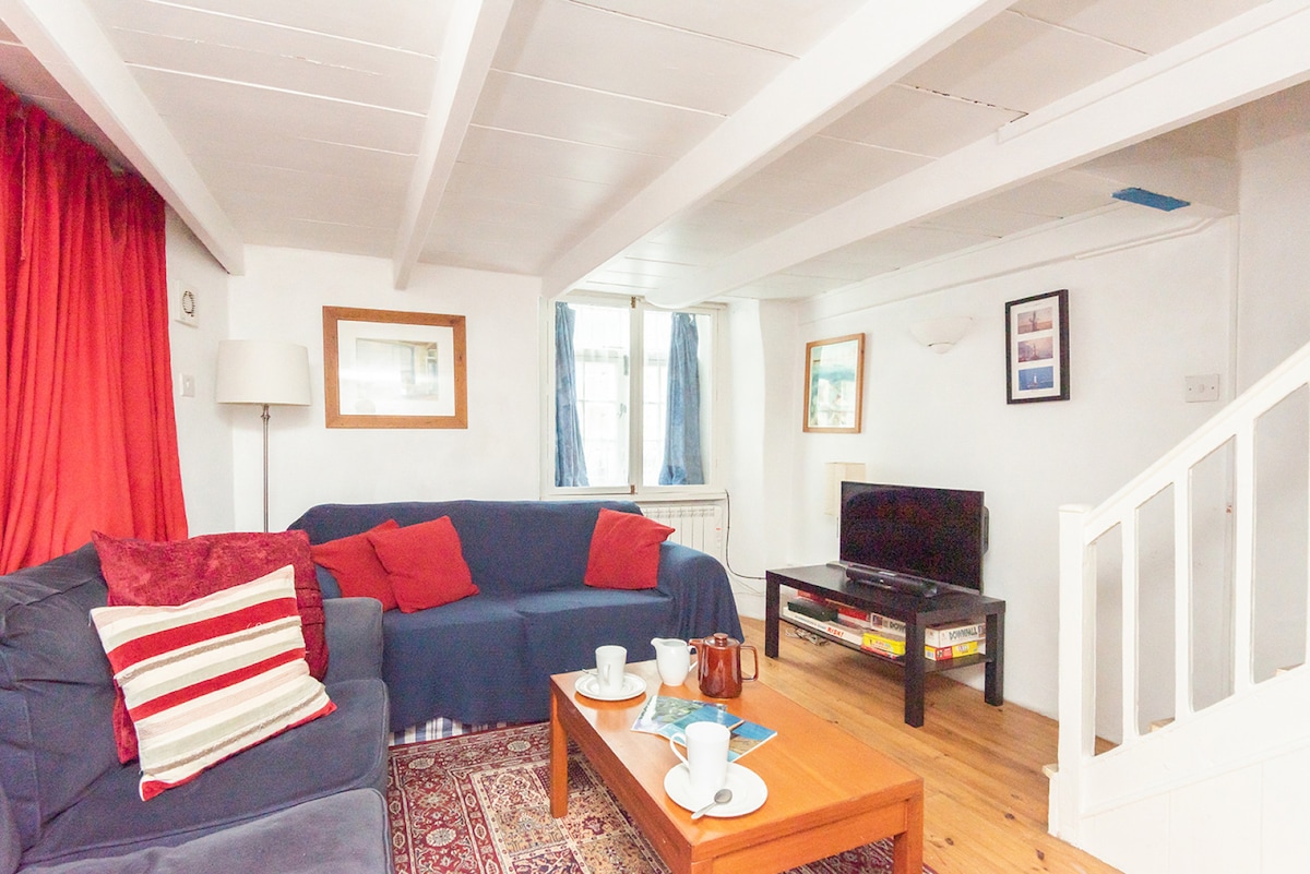 Trehaven Fisherman's Cottage: A Cornish Fairytale Step back in time and discover this meticulously restored 19th-century retreat. Steeped in history, this stunning 3 storey fisherman’s cottage boasts a living room with the uniquely exposed cliff face walls and original ship beams which form part of the cottage's structure, a testament to its dramatic coastal location, whispering tales of Looe’s rich seafaring past. The winding spiral staircase, and low ceilings further add to the ambience.