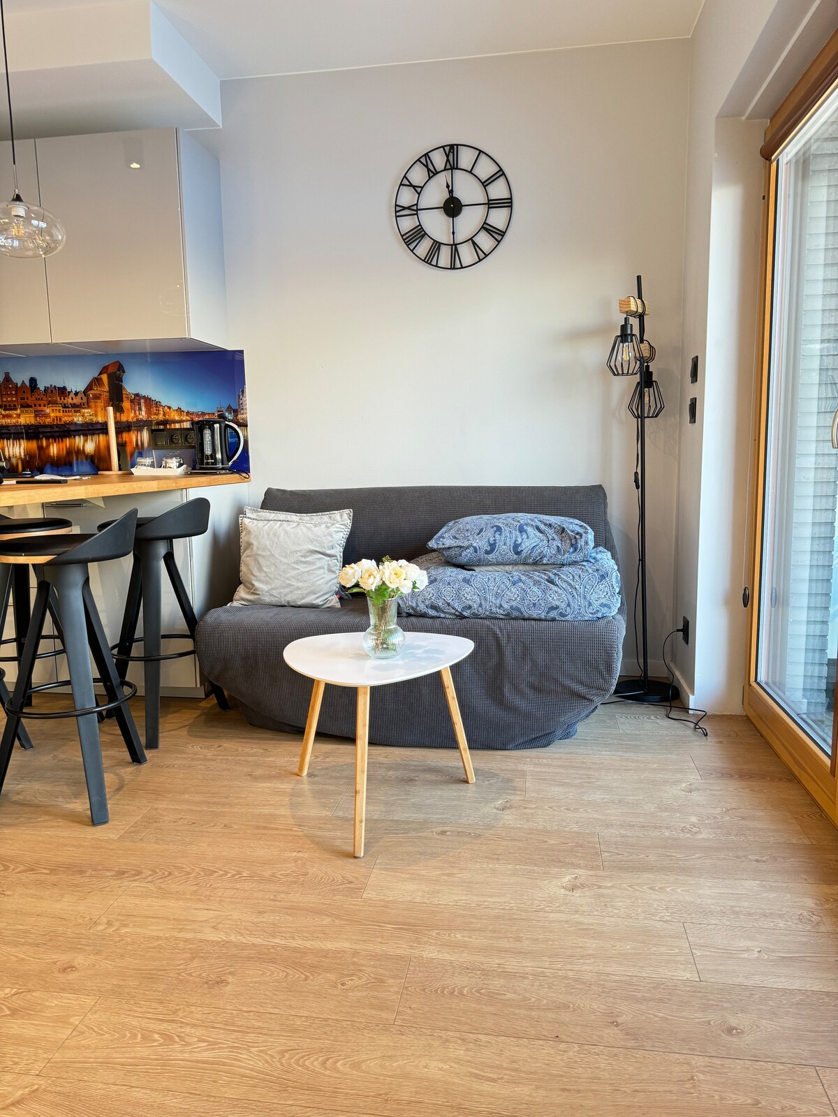 Riverside Wellness Studio – Gym, Sauna & Kids Room. Welcome to "Nadmotławie Belnea" by Comfy Apartments. This modern studio (28 m²) is the perfect base for couples or small families (2+1). We offer more than just a stay: enjoy access to a Gym and an indoor kids' playroom in the building. Guests can also use the Sauna (paid access). Relax on your balcony after a 10-15 min riverside walk to the Old Town. Comfort, safety, and wellness in one place.