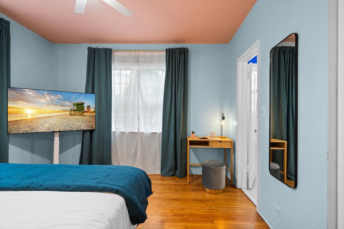 Step into our Moroccan-inspired oasis! Luxuriate in this beautifully appointed efficiency featuring a King bed, private en-suite bath, coffee station, and mini fridge. Enjoy entertainment on the 55-inch TV with HBO+, Apple TV, Prime, Disney, and more, plus high-speed internet. Coming Fall 2025: a luxurious pool, hot tub, outdoor kitchen, and more. This space can also be booked as part of our larger 2-bed \ 2 bath, or as a 3 bed\ 3-bath property for larger groups. Your getaway awaits!