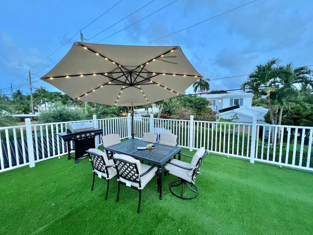 Stunning Villa in a quiet neighborhood surrounded by palm trees, featuring an open concept living space, 3 bedrooms, 2 bathrooms , fully equipped chef’s kitchen with top of the line appliances, indoor and outdoor covered dining and hang out area, office space, heated -pool, outdoor jacuzzi, BBQ grill and more..10 minutes away from the ocean, 15 min away from FLL Airport, close to most exciting spots in FLL. Publix, Starbucks, CVS only 5 mins away. We look forward to welcoming you!