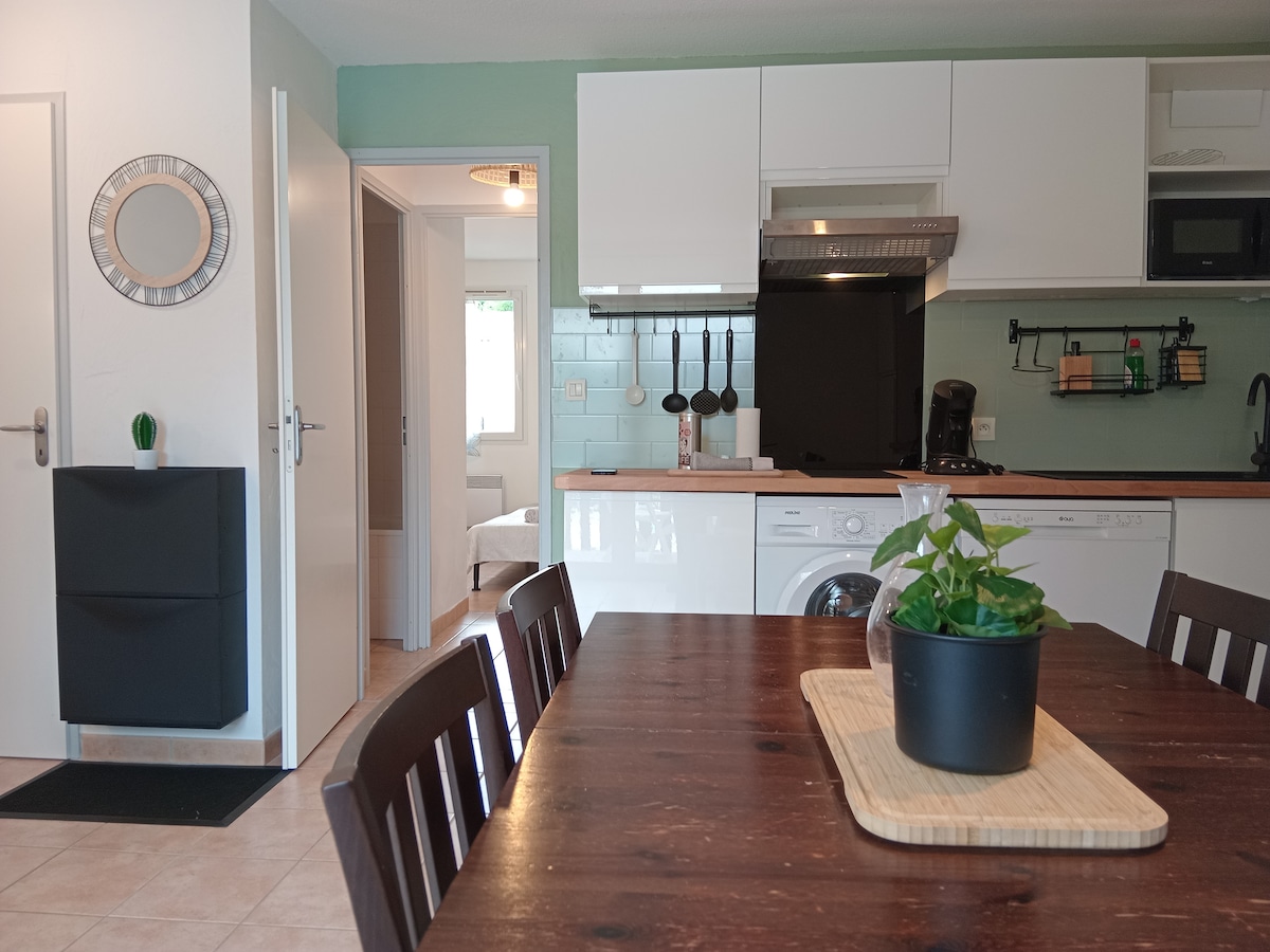 🏡 Charming independent air-conditioned gîte for rent! Ideal for 2 people (+ 3rd person with our comfortable sofa bed). 40 m2 with all comforts and independent bedroom. Sheets, towels & linen are also provided free of charge 👌 TV and free Wi-Fi 👌 Self check-in with digicode at the gate. At the gates of Moulin des Tours, Château Henry IV in Nérac... Close to Lake Clarens, thermal baths, amusement parks... Bordering Gers & Landes! 2 km from the Lou Chibaou equestrian center.