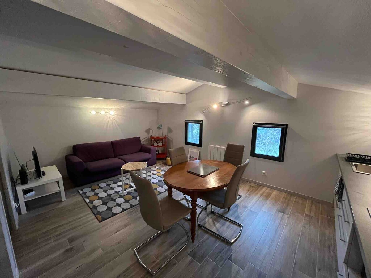 Independent studio located in our house, close to the center and available from Sunday evening to Friday morning, ideal for work-study student or worker on the move. This 15 m2 studio, completely renovated is perfectly equipped with a new 140 cm bed, open bathroom (shower and toilet), kitchen area. You will love our place because of its comfortable bed and independence. /!\ STRICTLY non-smoking accommodation, no smoking allowed in front of the house.