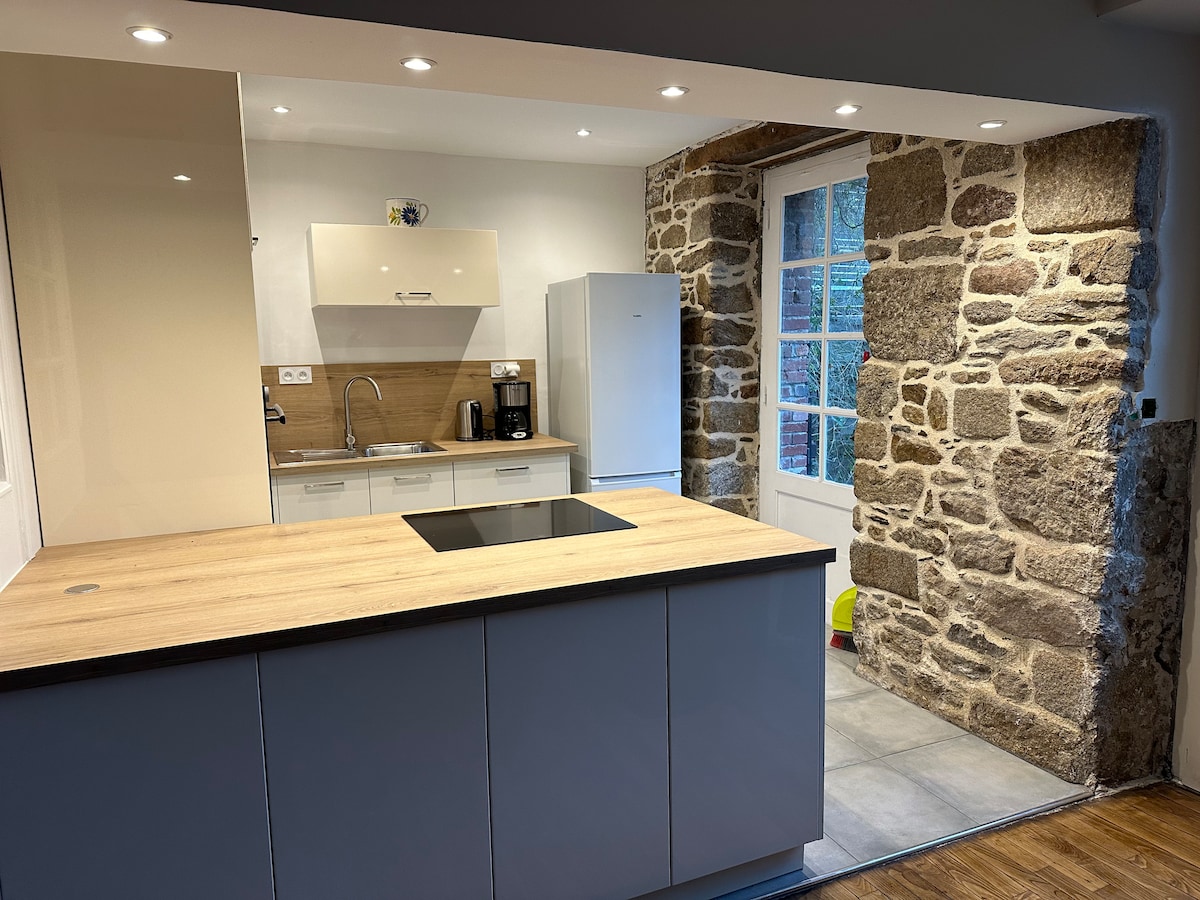 Enjoy this cottage renovated by us to spend a few days a few kilometers from "the Wonder": Mont-Saint-Michel. In the countryside, the nearest town is less than a 10-minute drive away and it is ideally located 30 minutes from Granville and St Malo. This will allow you to discover the entire bay of Mt St Michel. On site, the cottage has an equipped kitchen, a master bedroom with a 160 bed and a second mezzanine sleeping area with 2 single beds,...