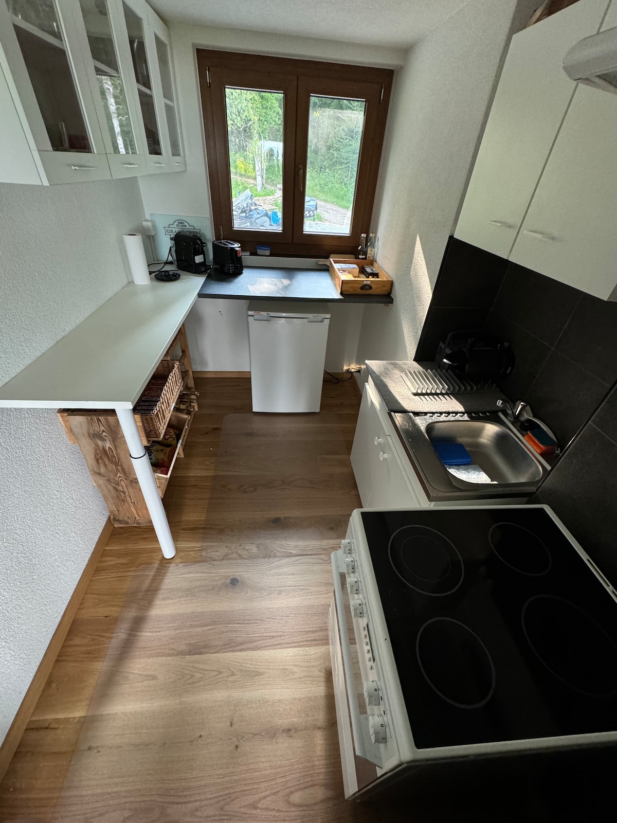 Studio for rent for 2 people on the ground floor in the heart of Jura (Switzerland) with independent entrance, fully equipped (stove, fridge, coffee machine, toaster, kettle, etc.) 20 m2 Perfect for travelers looking for a quiet place and a small pied-à-terre to visit the Jura. Ideally located close to shops and the train station and public transport. Bath towels, kitchen towels and bed linen are provided during the stay.