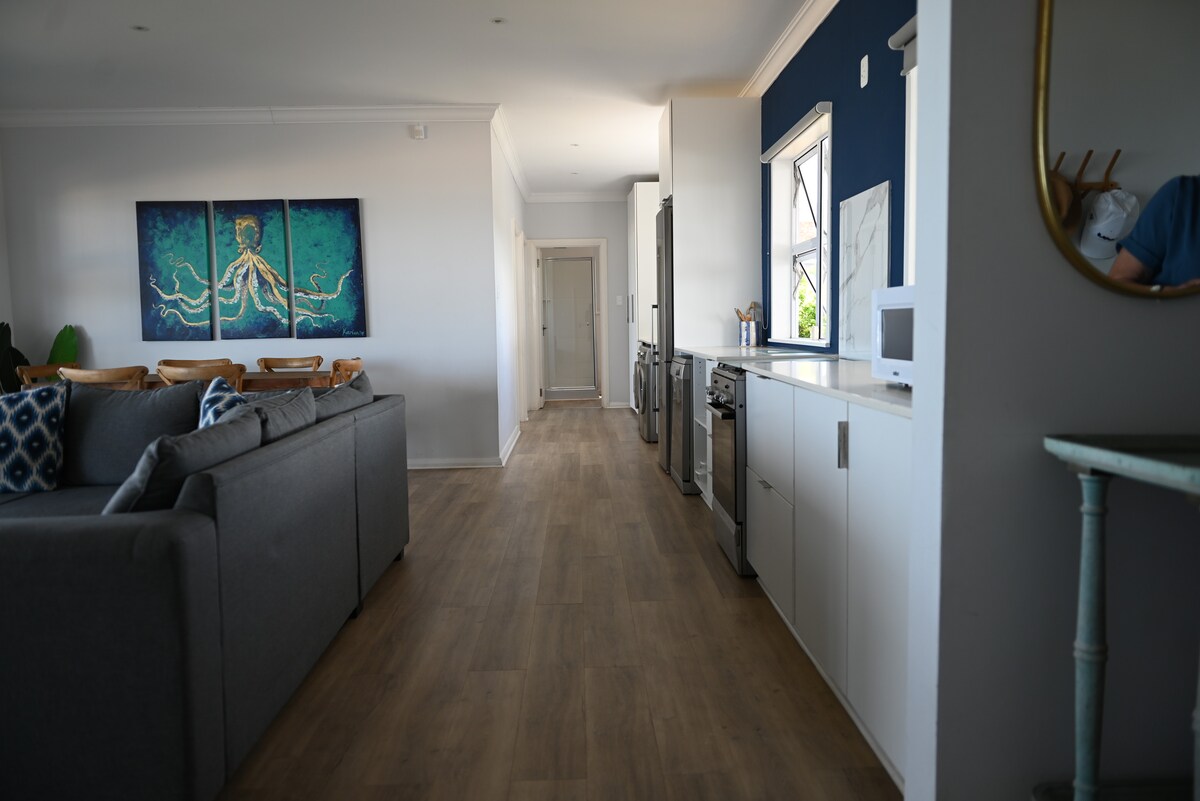 This elegantly styled two bedroom cottage provides you 5 star comfort, unique location and stunning ocean view. Newly renovated interior with stylish furnishings and fittings, you will fall in love with the cosy feeling and tranquil environment. Walk down to the beach, breath in the ocean mist and leave only footprints behind ….. Equipped with inverter system to power lights, TV, Wifi, alarm and water pump. Gas hob so load shedding unaffected ..