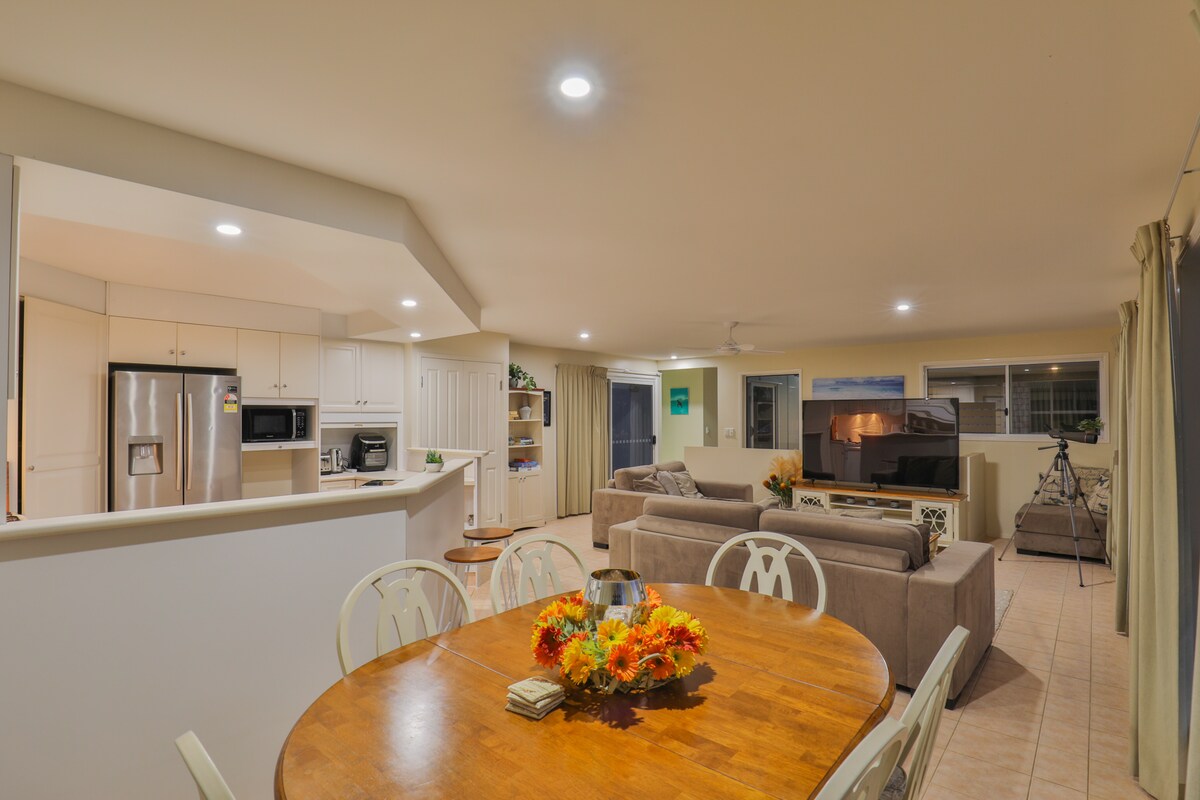 The perfect getaway, with great sized back yard for your pet. We invite you to enjoy a relaxing stay at Barnetts Beach House. Nestled in a tranquil Bargara street, just a short stroll from the ocean, this property offers the perfect retreat. Within a 5-minute drive, you'll find yourself amidst shops, restaurants, golf course and beaches. Whether you're planning a brief escape or a relaxing family holiday, this air conditioned, spacious home will effortlessly cater to your needs.