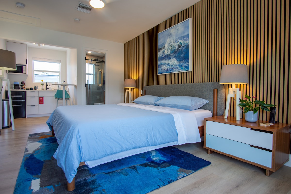 Spacious 1 bedroom/1 bath suite (within a quaint triplex). Large Tiki Hut with grill and TV. 5 minute drive to beach! NO PET FEES!! ✸No pet fee, we love our 4-legged guests! ✸Free beach chairs & umbrellas ✸ KING WESTIN HEAVENLY BED for ultimate comfort and sleep. ✸Echo, Prime Video, Netflix, Roku TVs ✸Unlimited household supplies (TP, paper towels, shampoo, etc.) ✸Free gourmet coffee & tea!!✸ 24/7 LOCAL host support (we're here to make your trip perfect!)