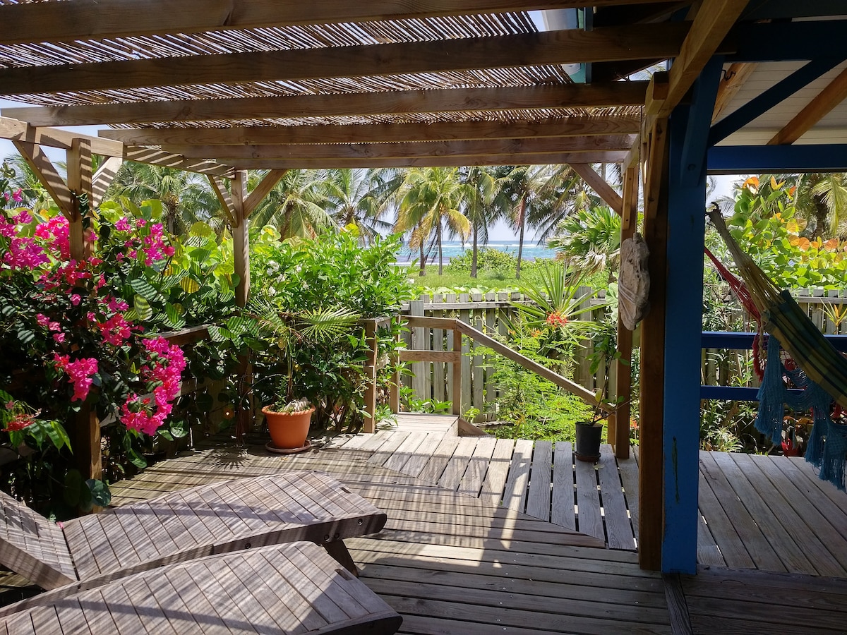 "COUNTRY LODGE" Charming accommodation in a tropical garden🌸🌴, sea view🤩. Bedroom 1 bed (160 x 200 or 2 beds 80 x 200), bathroom toilet, kitchen, terraces, deck with sun loungers Intimate accommodation adjoining the main house with independent access A welcome planter and snacks are offered Masks, snorkels, fins are available, if needed. Book box. The country lodge is no longer available on your dates, you can check out the "Rosewood lodge" listing 😉