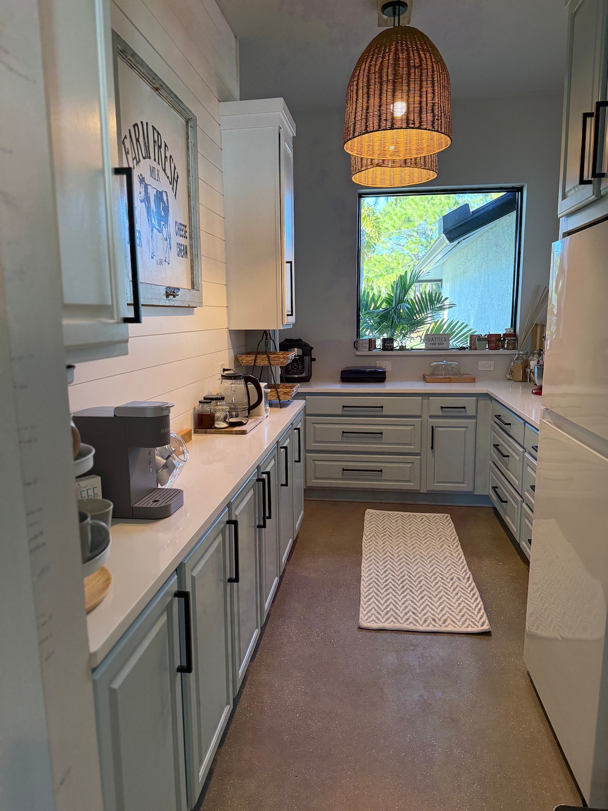 Welcome to The Palm — a fire pit oasis near Jensen Beach. Unwind in the private backyard, relax in the screened patio with smart TV and hanging chairs, or cook in the fully stocked modern kitchen. Just minutes from Jensen Beach, Stuart Beach, and historic downtown Stuart, this home is perfect for families, couples, and remote workers. Enjoy fast Wi-Fi, memory-foam beds, and kid-friendly extras like a pack & play and changing station.