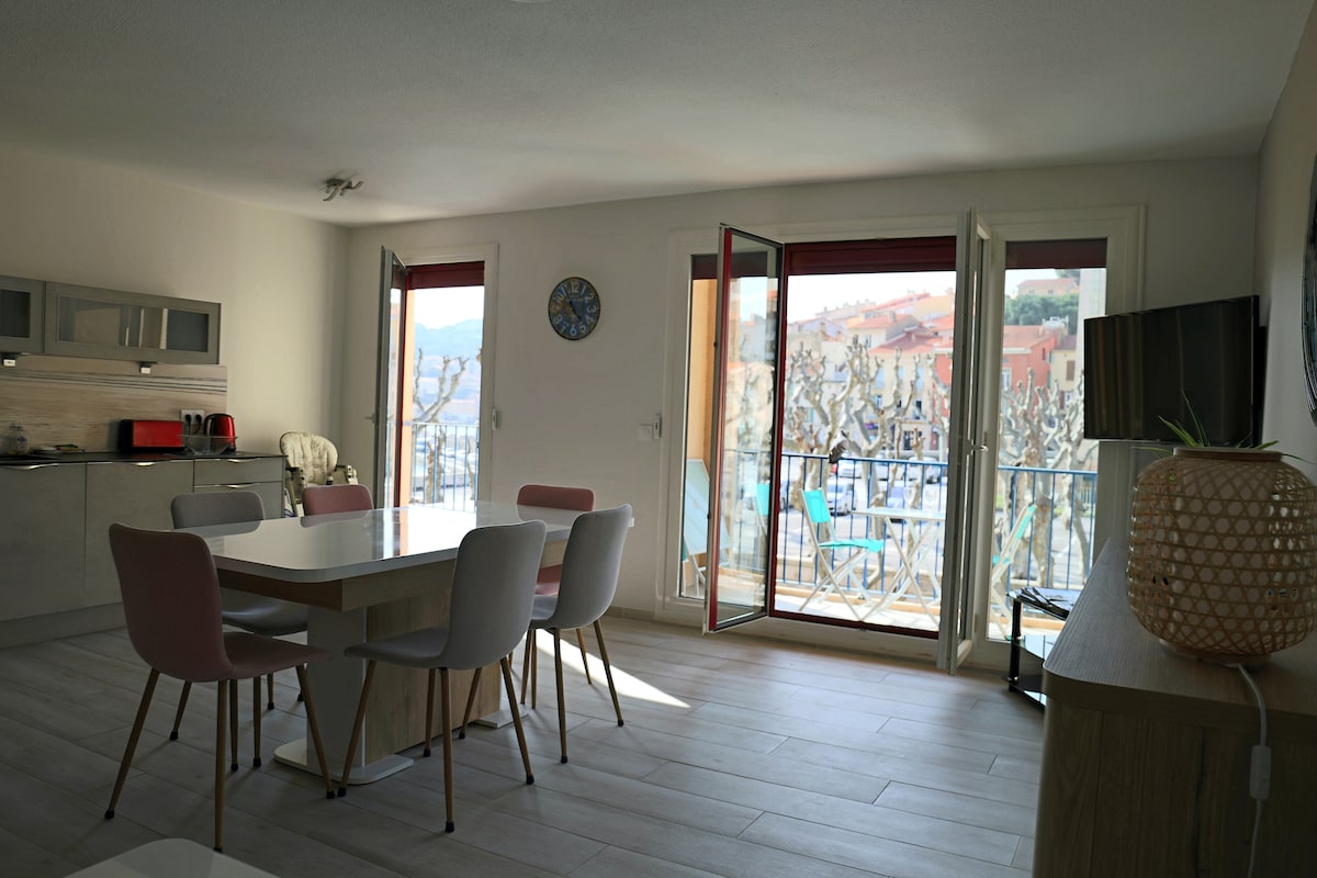 FEET IN THE WATER! Beautiful 2-room apartment located in a small quiet building with a capacity of 2 to 3 people, completely refurbished and very comfortable with panoramic sea views. Free parking nearby. There are 3 beaches close to the apartment, a 5-minute walk away, nestled in small coves. One with pebbles and the other 2 with sand (shoes recommended) You will have the option to access many other beaches on Port-Vendres by car or on foot.