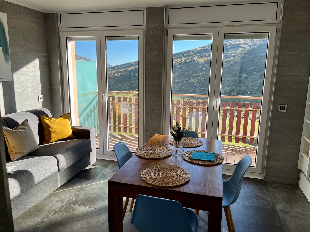 Enjoy a stylish experience in this central accommodation located just about 80m from the ski slopes, with direct access to all necessary services (bars, restaurants, supermarkets, pharmacies, sports shops) just out of the portal. The space has all the comfort and everything you need to spend unforgettable days. It faces east and has a balcony where you can relax with a book, eat, have a drink while contemplating the spectacular mountains.