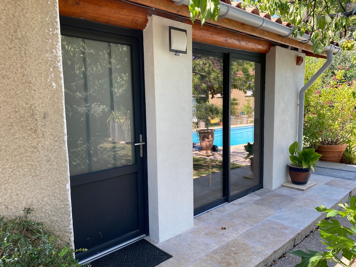 Close to VALENCE, quiet. Ideal for business trips or couple vacations. Nice 2-room house, 32 m², perfectly equipped. Air conditioning, Wi-Fi, Netflix. Green environment, surrounded by bamboos. Small private terrace. Free and secure parking on site. All shops within walking distance. Valence train station in 20 minutes by bus or Velolib. Perfect "base camp" to discover Vercors, Ardèche or Drôme. Shared pool, with owners, accessible in certain time slots.