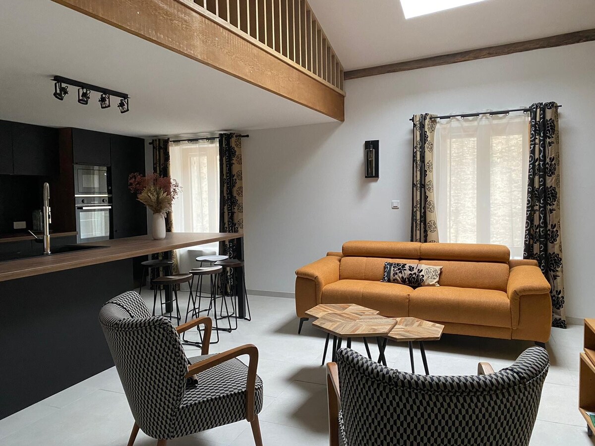 Les Vergers d'Epona welcome you in a beautiful, completely independent loft with authentic wood-style decor. In the heart of nature in a preserved village, you can enjoy the tranquility of the place. The accommodation includes: 1 standard double bed. 1 standard double bed in the attic with access by miller's ladder (not suitable for adults). 1 extra bed on sofa bed. Fully-equipped kitchen. Shower room & separate toilet. Roof Deck