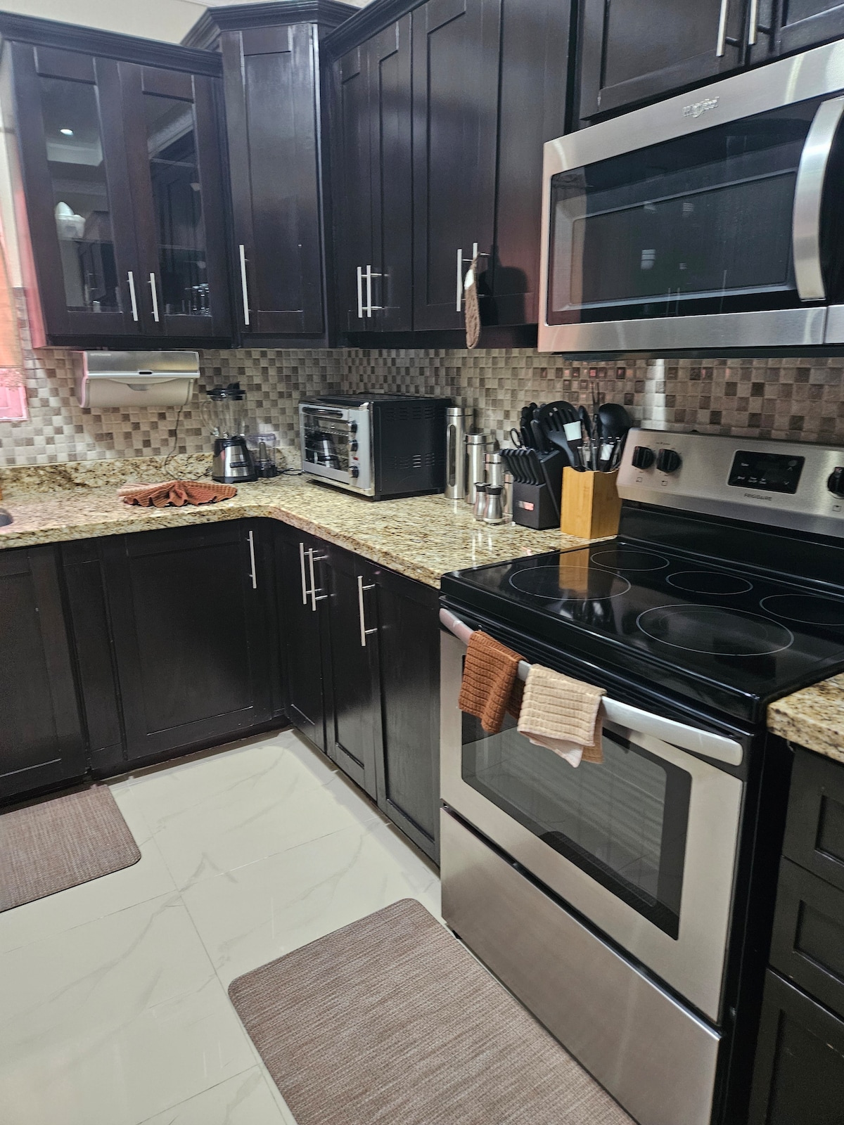 W22 Urban Retreat offers a modern, comfortable stay in the heart of Kingston 6 - perfect for business, leisure & long stays. This open-concept 1-bedroom is designed for comfort & convenience. Enjoy the bright & airy living space, dedicated dining area, & powder room. The fully equipped kitchen allows for easy meal preparation, in-unit laundry provide all the comforts of home. Step out onto the balcony to savor the view or relax in a comfortable queen-sized bed with spacious walk-in closet.