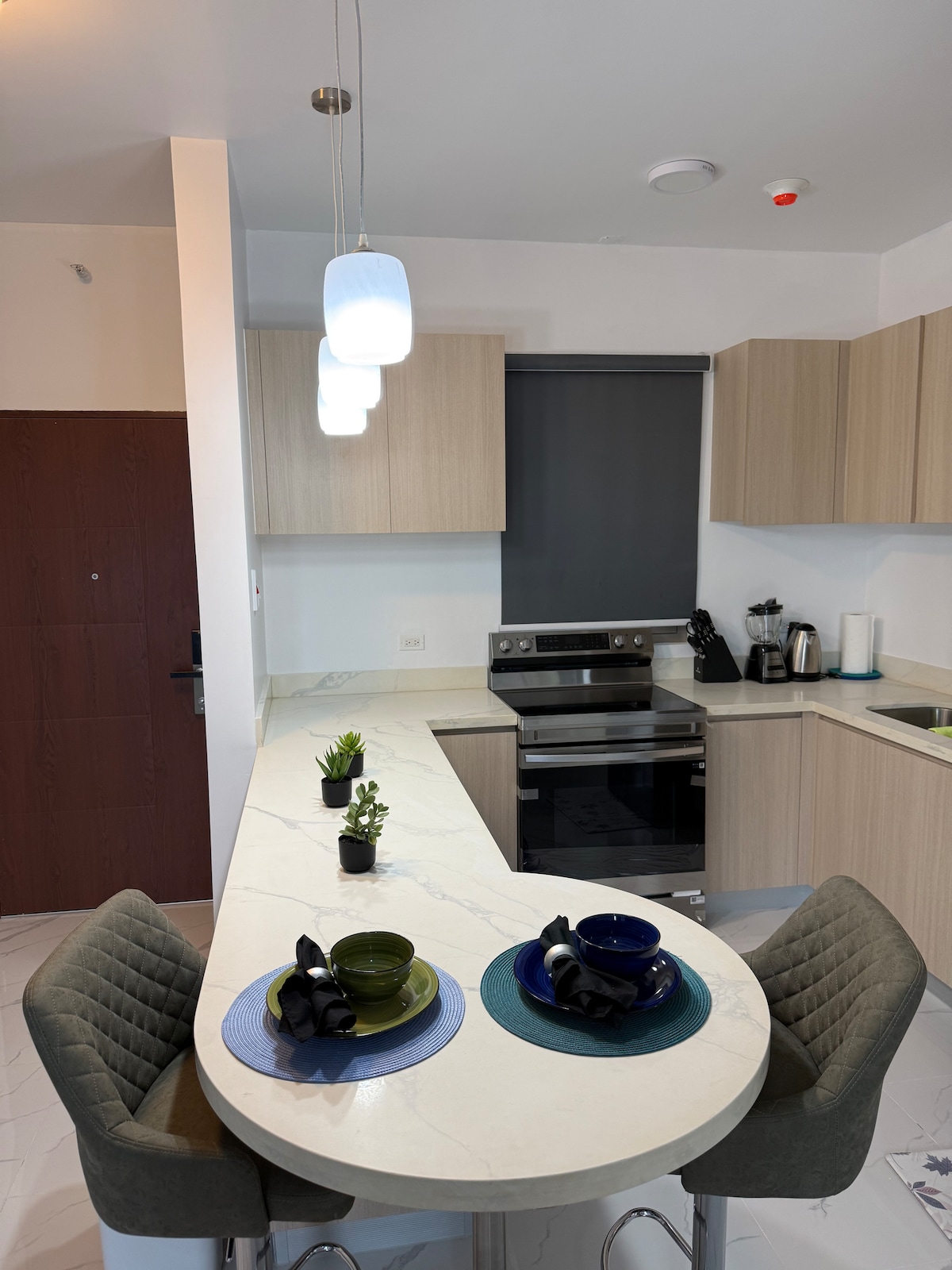 New 1 bedroom apartment with modern facilities in gated community 15 minutes from business district. There is free unlimited high speed wifi provided. Guests should know that enhanced cleaning protocol is in place since Covid-19. This location is perfect for either the business traveler who wants to work from home from or that couple wanting privacy but closeness to the action or the national returning home wanting a place to settle before making a permanent move.