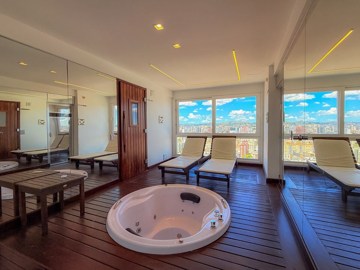 Este espaço único, com móveis requintados, tem sacada para o guaíba e seu esplêndido Pôr-do-sol, e também vista para o Barra Shopping, onde está inserido, com acesso direto a restaurantes, cinema, lojas, bares, sorveterias, farmácias, supermercado e livraria.Também tem acesso à orla para caminhadas, ciclismo e esportes náuticos. Está a 300 m de outro Shopping, o Pontal, com outras opções gastronômicas e de bares e lojas.