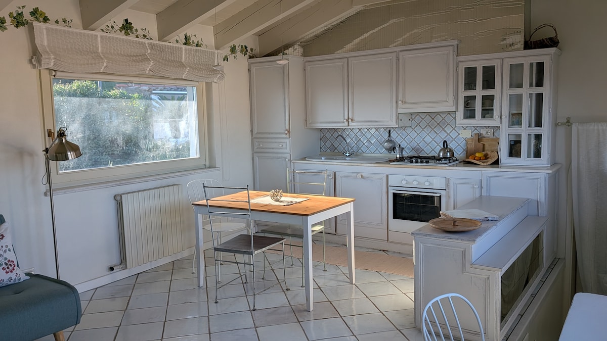 House in the Historic Center of Desenzano, ideal for couples, 500 meters from the lake and the main squares, private entrance on the ground floor, garden with relaxation space and area with table and chairs, well-kept environment with new bathroom equipped with shower. Kitchen equipped with dishwasher, washing machine, oven, fridge and coffee corner. Living room with table and sofa and TV. Spacious bedroom with double bed, desk and comfortable wardrobe. Close to shops, bars and restaurants.