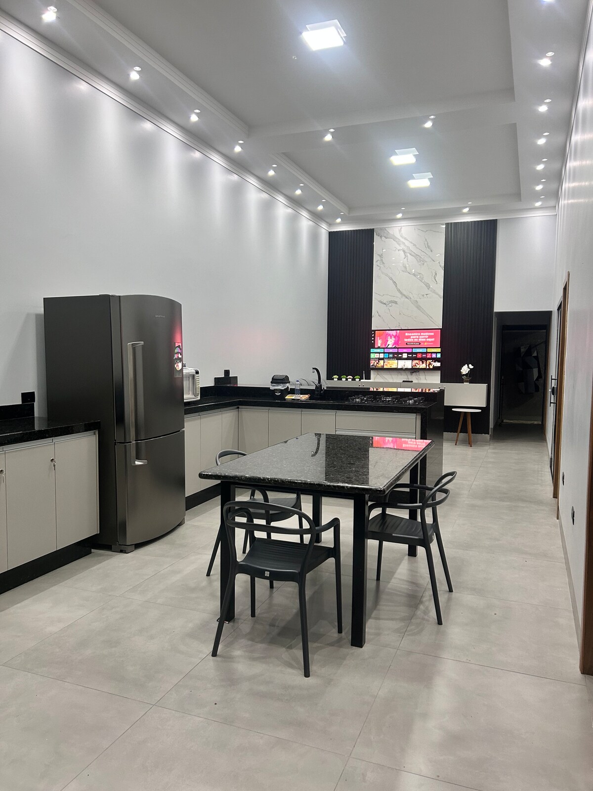 Your family will be close to everything when you stay at this centrally-located place. 11 km from Puerto Rico Jacuzzi in the area The house overlooks the river It has 3 bedrooms, 2 of them being en-suites Triliche Both rooms have air conditioning and smart TV Electric blinds Planned kitchen Cooktop and sink next to the barbecue Beer cooler Fridge TV with SKY Wi-Fi Fire sensor 3 bathrooms 3 bedrooms and accommodates a couple and child in the living room with air conditioning 5 TVs Sofa bed in the living room Dishwasher Outdoor security camera