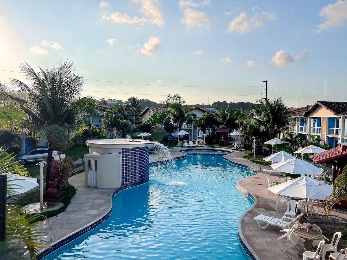 Enjoy Porto Seguro and its beautiful beaches, at Aquamarine, a cozy, rustic, comfortable place, with the face of Bahia!!! You will find everything you need, such as a restaurant, market, pharmacy, bakery, health center, 10 minutes from downtown, not to mention that it is only 100 meters from the sea and our wonderful beaches. Our Acquamarine condominium has a great structure, such as a giant swimming pool and kiosk with an outdoor bathroom and shower, not to mention the wonderful landscaping, lots of green areas.🏝