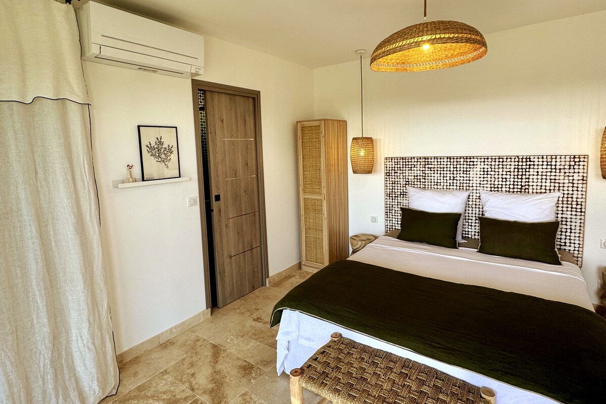 Rent a 50 m2 single-story apartment, located under the inhabitant's villa. The accommodation is composed of a spacious living room, a small kitchen, a bedroom and a bathroom. Located in the hamlet of Bocca Del Oro, a quiet and peaceful place, just minutes from the most beautiful beaches of the extreme South and 10 minutes by car from the city center of Porto-Vecchio.