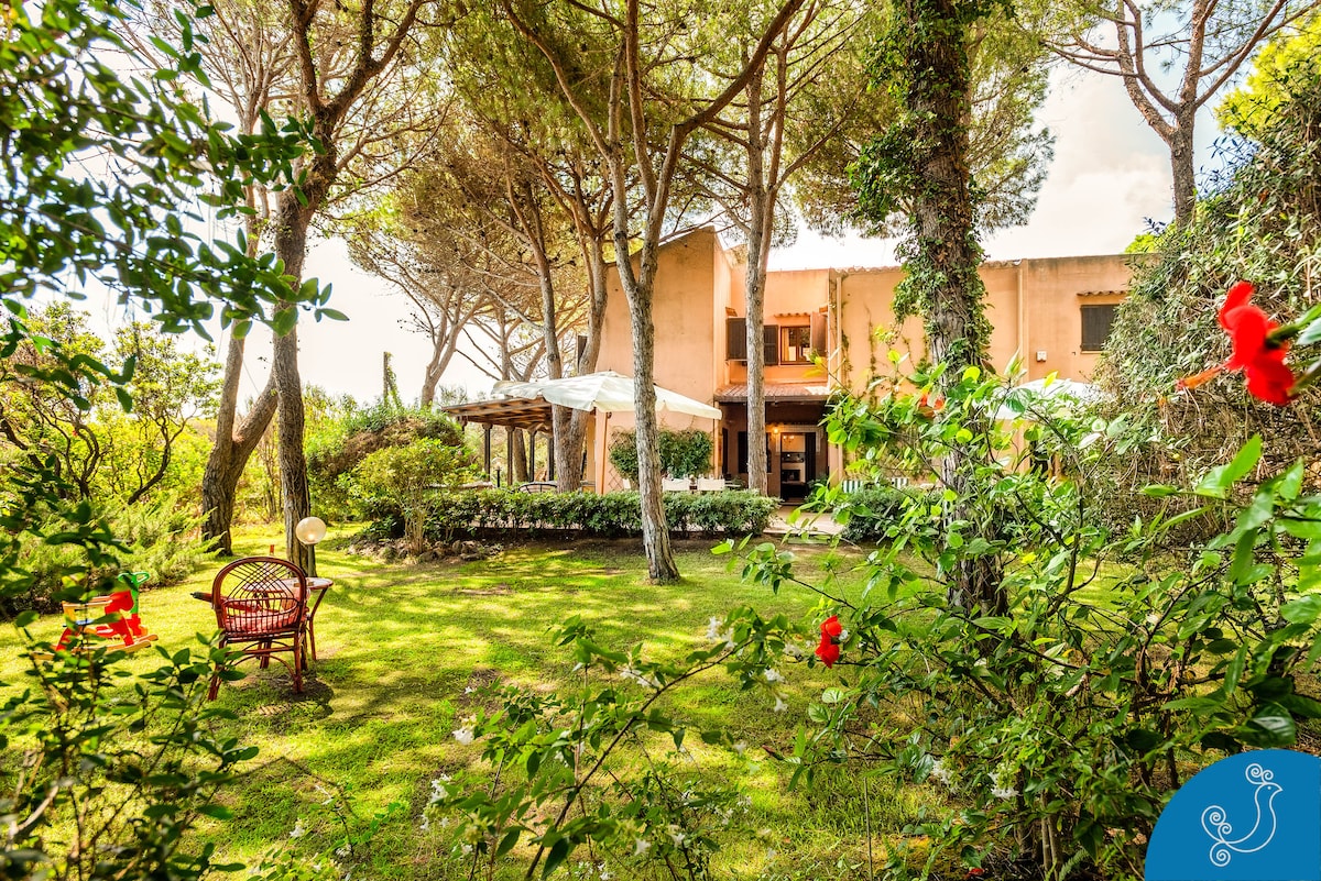 Villa in typical Sardinian style totally renovated with fine finishes, in a quiet condominium a few steps from the beach of Is Morus (350 m), with security, sports facilities and playground for children. The proposed house is part of a larger villa: two bathrooms, one "en suite", two double/twin bedrooms, equipped kitchen, living room overlooking the covered patio and a large lawn. A few minutes' drive to the most beautiful beaches of southern Sardinia and the lively village of Pula.