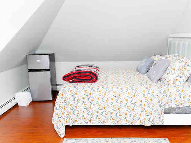 Current listed price includes 15% discnt. A five minute drive to downtown Newport, and a few minutes walk to Sachuest Beach, this above-garage guesthouse is detached from the main residence with its own private entrance. There is a large living area and a kitchenette, bedroom and bathroom. The living room sofa converts to a bed, so the property is ideal for 2 people, however, the sleep sofa can accommodate 2 more. There is no extra charge for children under the age of 18. We are dog friendly.