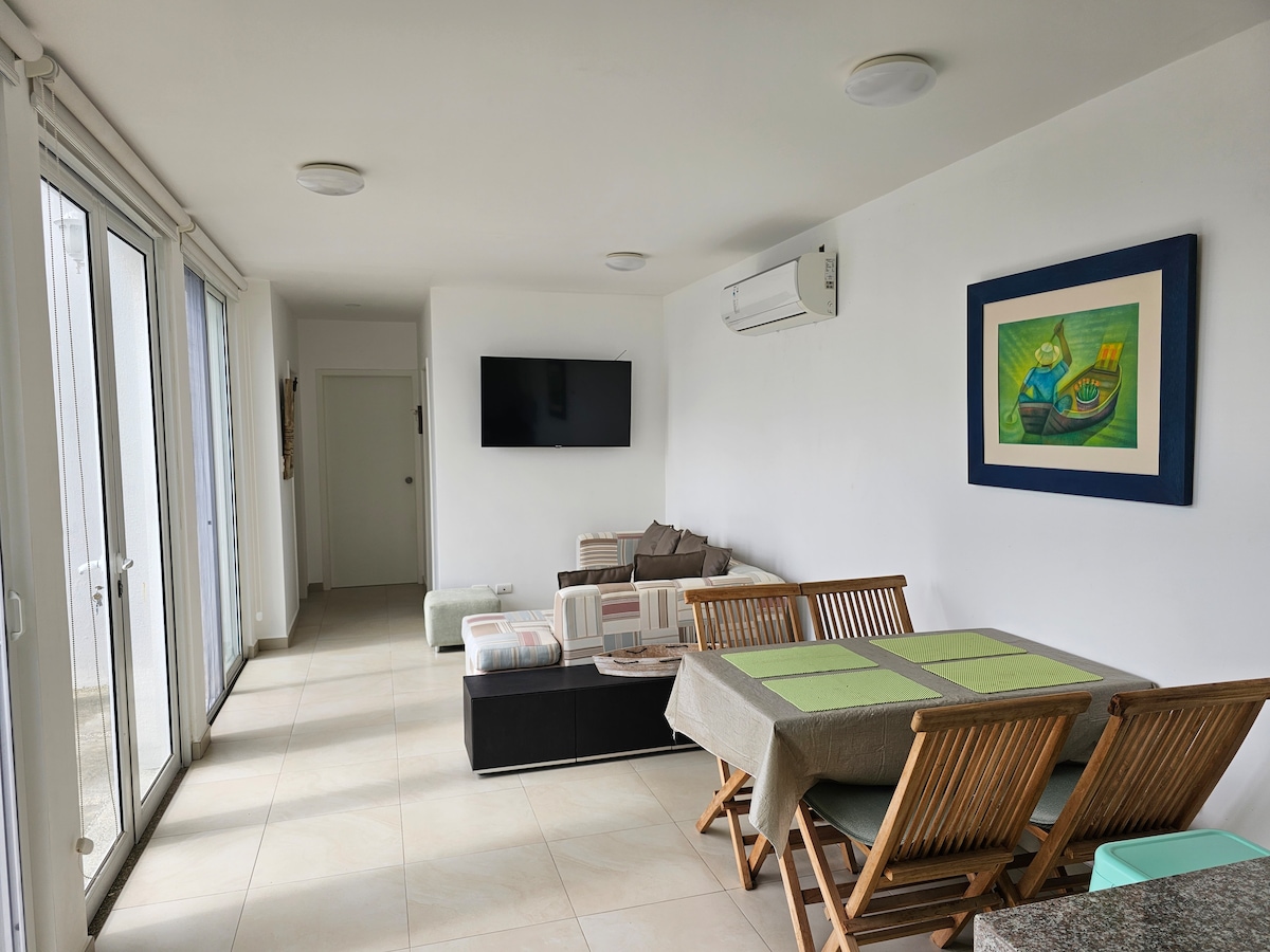 Bienvenido a tu Suite de ensueño con Vista al Mar! Disfruta la puesta del Sol, la brisa del océano y la comodidad de nuestro alojamiento totalmente equipado, con aires acondicionados e Internet de alta velocidad. Ubicado estratégicamente dentro de una Urbanización privada con acceso a Piscinas, Jacuzzi, Parque Infantil, Gimnasio, Baños, Duchas, Seguridad 24/7, etc. Descubre el verdadero significado del relax y la comodidad en tu próxima escapada con nosotros. Reserva ahora y vive la experiencia!