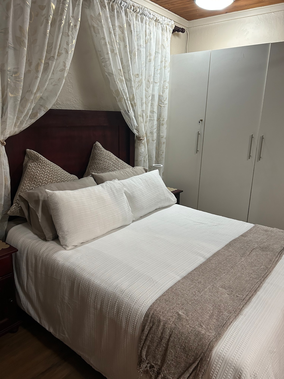 This modern & stylish self-catering cottage is situated in a safe residential neighborhood, next to the largest security company in town. It can comfortably host two adults, with an extra loft bed which can convert to 2 single or 1 queen bed - perfect accommodation for every person & family . The unit is detached from the main house on the property and has an en-suite bathroom with a shower, as well as a fully equipped kitchen. Secure gated parking . WiFi, DSTV & Netflixs are also available.
