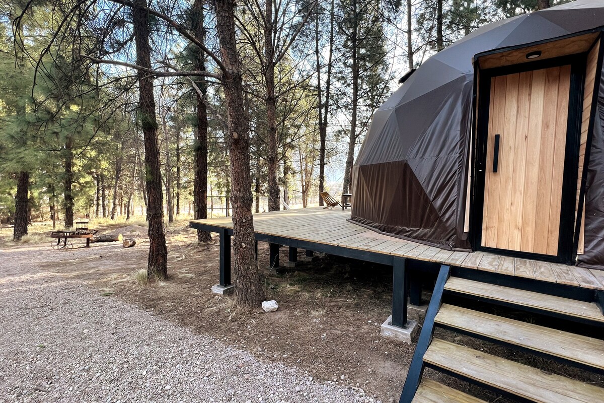 A dome in the woods with a mountain feel, surrounded by ancient pines, surrounded by the charm of nature, the sounds of birds and different animals. Enjoy the visit of deer very close to you. Come and rest and disconnect. The dome is located inside the emblematic Rincón Suizo Restaurant, so you can try its exquisite dishes from Tuesday to Sunday. The dome is located 32 km from the city of Mendoza. Includes dry breakfast and Wi-Fi.