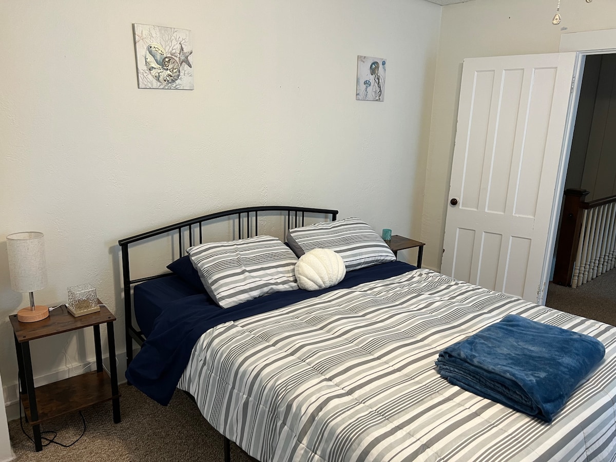 This two bedroom, one bath will have you feeling right at home the moment you walk through the front door. Recently renovated, with brand new appliances and furniture throughout the entire home. Located on a quiet side street, and just a few minutes walk to downtown, you recieve the best of both worlds with this cozy space! Fully equipped with all your daily essentials, we strive to make your stay as comfortable and convenient as possible. *two-story home. Must climb stairs to access bedrooms*