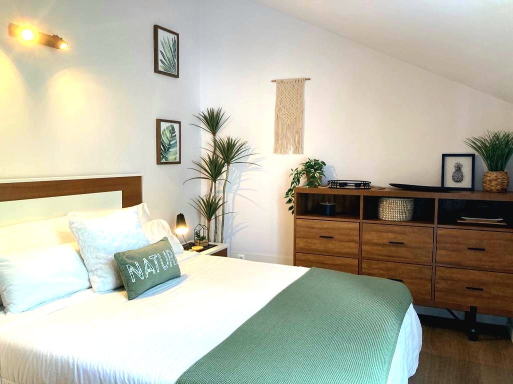 Beautiful 2-bedroom apartment with ocean views, 2 bathrooms, open kitchen with dining area, TV lounge with desk area, terrace and barbecue. Wood heating. Powerful and reliable internet connection (Wi-Fi) thanks to fiber, ideal for teleworking. Breakfasts included. Floral setting, beautiful, relaxing and warm welcome!