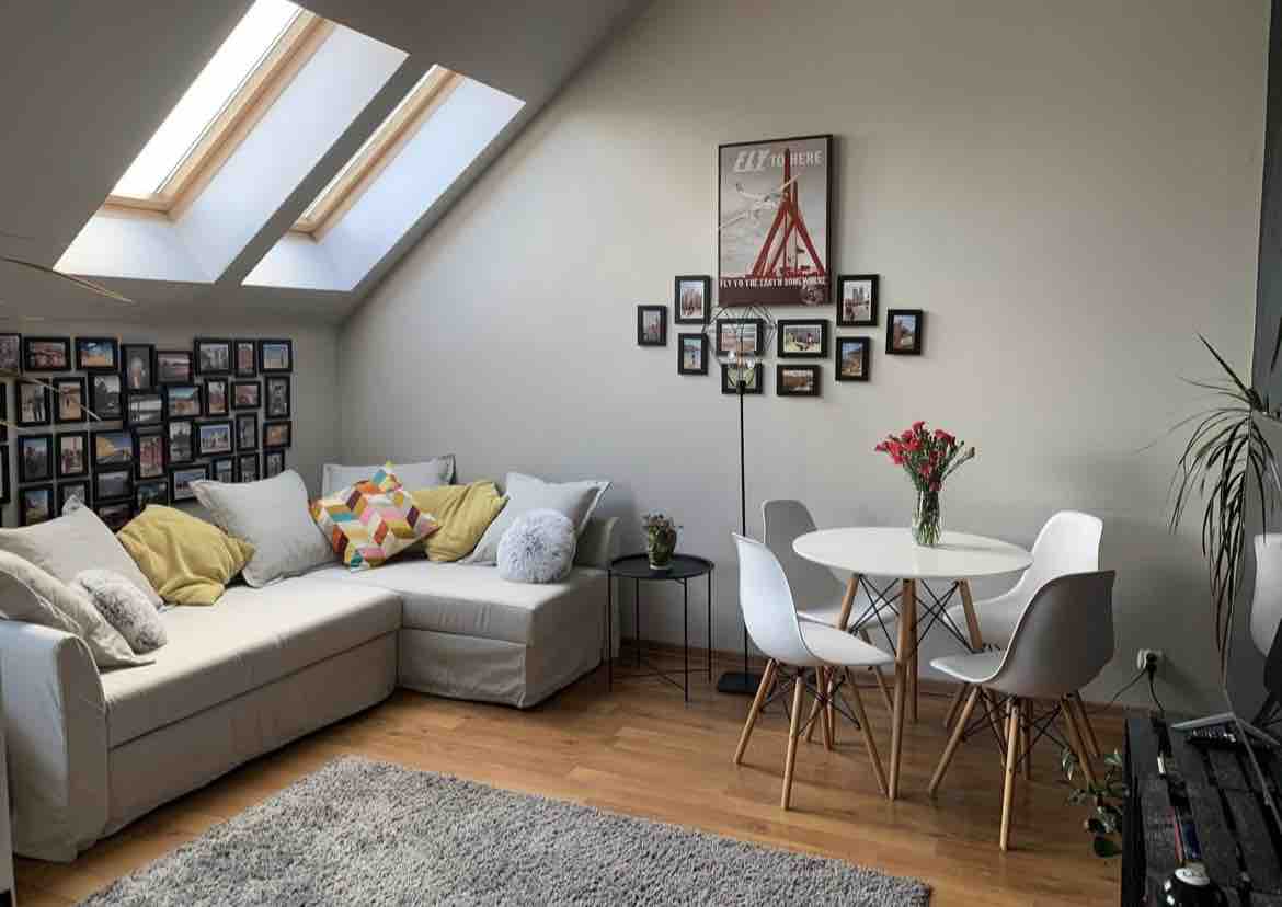 A sunny and spacious studio in the attic of a tenement house in the heart of Jeżyce. The apartment has air conditioning, wifi, kitchen, bathroom and washing machine. The sleeping area is not separated by a door from the rest of the room. Directly opposite there are three interesting restaurants in Jeżyce (in the evenings the place is not quiet), within a 10-minute walk you can reach dozens of atmospheric places. A walk to the historic center of Poznan takes about 30 minutes. Good public transport connection.