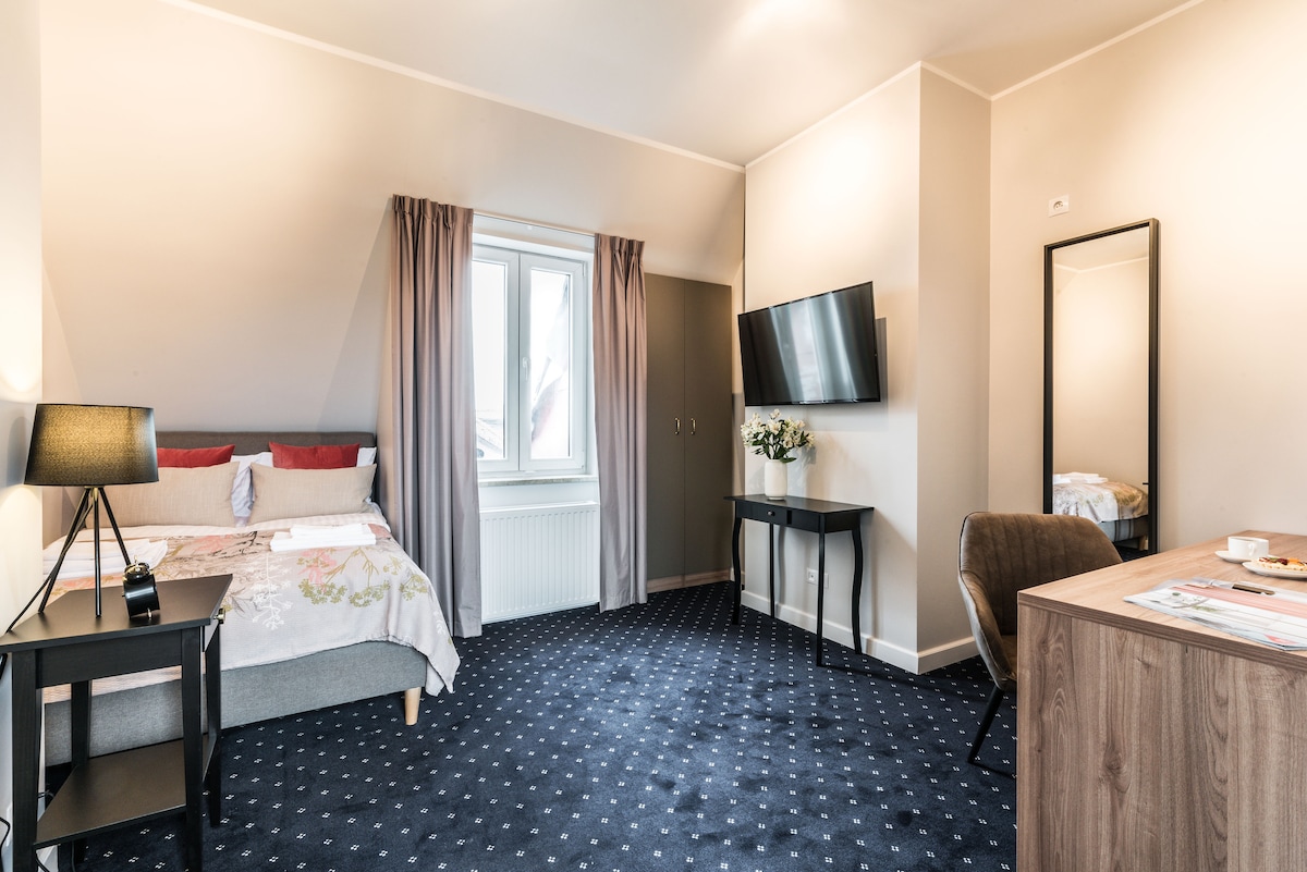 ✨ Cozy Single Room by Old Market 150m 🏡 About this place Welcome to our comfortable, stylish single room, perfect for solo travelers and business guests. The room combines modern design with full functionality, ensuring a relaxing stay in the heart of Poznań. Highlights: self check-in, monitored parking, and on-site restaurant.