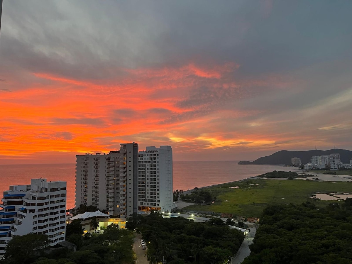 Una ubicación privilegiada, con una de las mejores playas de Santa Marta su arena blanca y amplia. Acceso directo al centro comercial Zazué, con mall comercial, Restaurantes, cajeros y supermercados. En el apto se da la sensación de estar al aire libre por la terraza tan amplia que tiene de uso privado. Los atardeceres que se disfrutan desde la terraza son únicos. Por tener acceso al centro comercial se facilita el viaje pareciendo estar en un hotel evitando sentirse encerrado