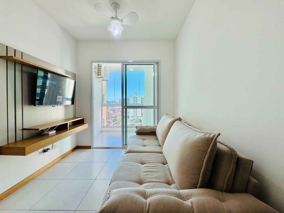 🔥 NOVIDADE: Neste imóvel, você parcela sua reserva em 6x sem juros! 🔥 Apartamento com 1 quarto, Wi-Fi ultra, Ar Condicionado no quarto e na sala, TVs Smart, 1 Vaga (coberta) de garagem, localizado na praia de Itaparica em Vila Velha/ES - literalmente, ao lado do Itaparica Food Park! Possui 1 cama de Casal, 1 sofá (enorme) tamanho Casal + 1 banheiro, 1 lavabo, lençóis, mantas e toalhas inclusas. Prédio com Portaria presencial 24H. Ônibus de turismo que faz um Tour na Grande Vitória.