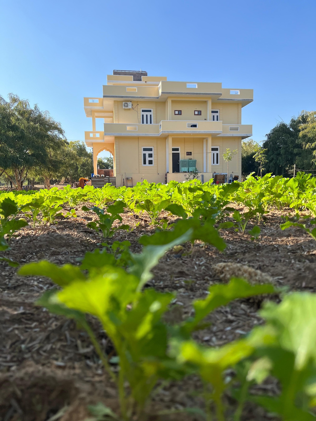 Relax with the sounds of birds when you stay with us at Luomo/Shri Ram Upvan, a farm where our family from Delhi practices organic farming. Enjoy learning about growing various crops, fruits, and vegetables as you stroll through the farms during your evening walk. The pool with fresh water awaits you. (We repurpose all the water for our plants afterward) The tastefully designed house keeps you connected to the outdoors with large glass windows overlooking the farm and serene mountain views.