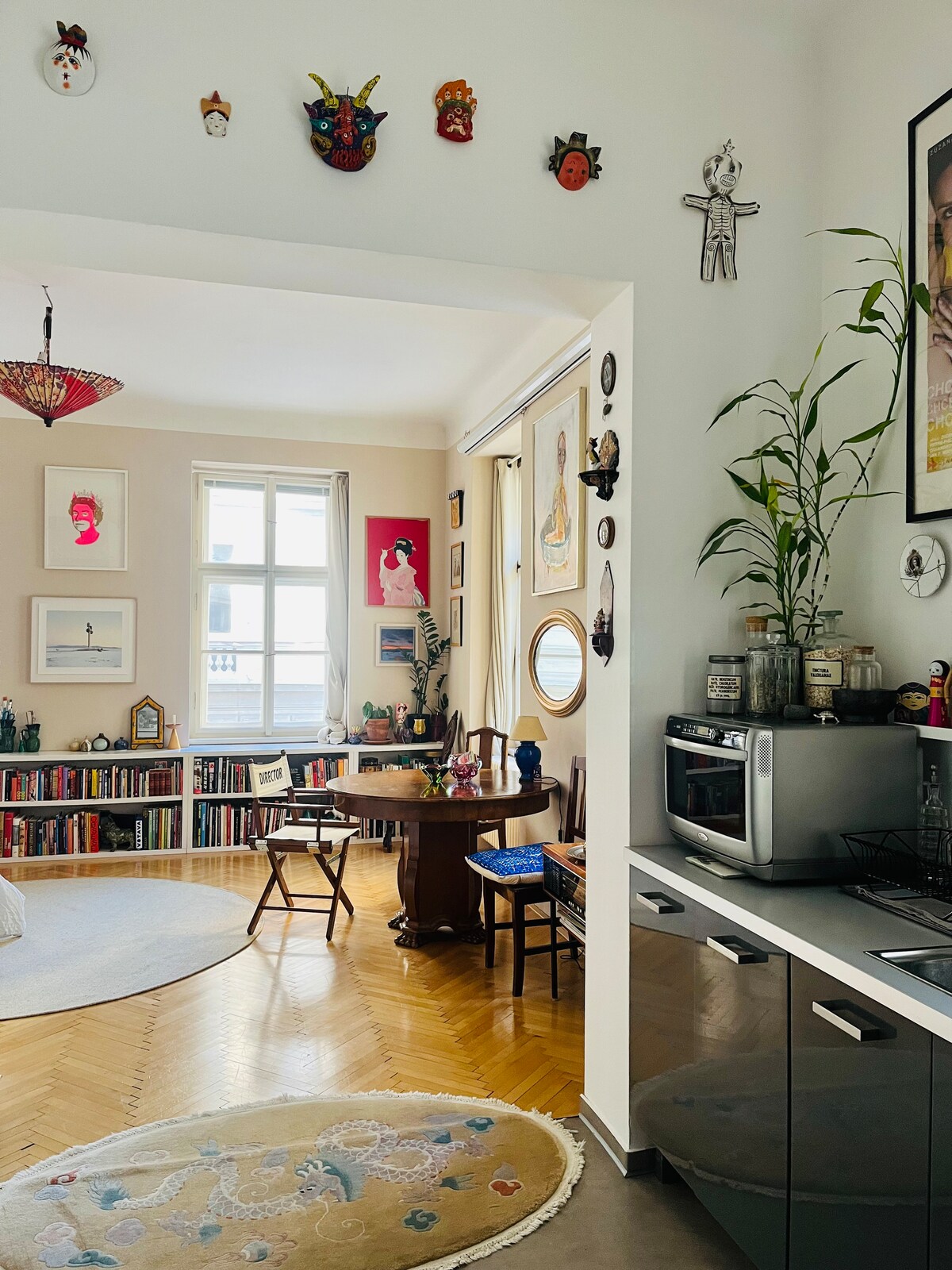 An antidote to bland hotel rooms :) My flat is on the first floor of an historic apartment building and it's original features like high ceilings and parquet floors retain the grandeur of early 20th century Prague residences. Features: - kitchen (and Nespresso) - bath, shower, washing machine, bed 200X160cm. The neighbourhood retains 'local' charm, travel to the centre is easy and there's a cool Vietnamese store next door.