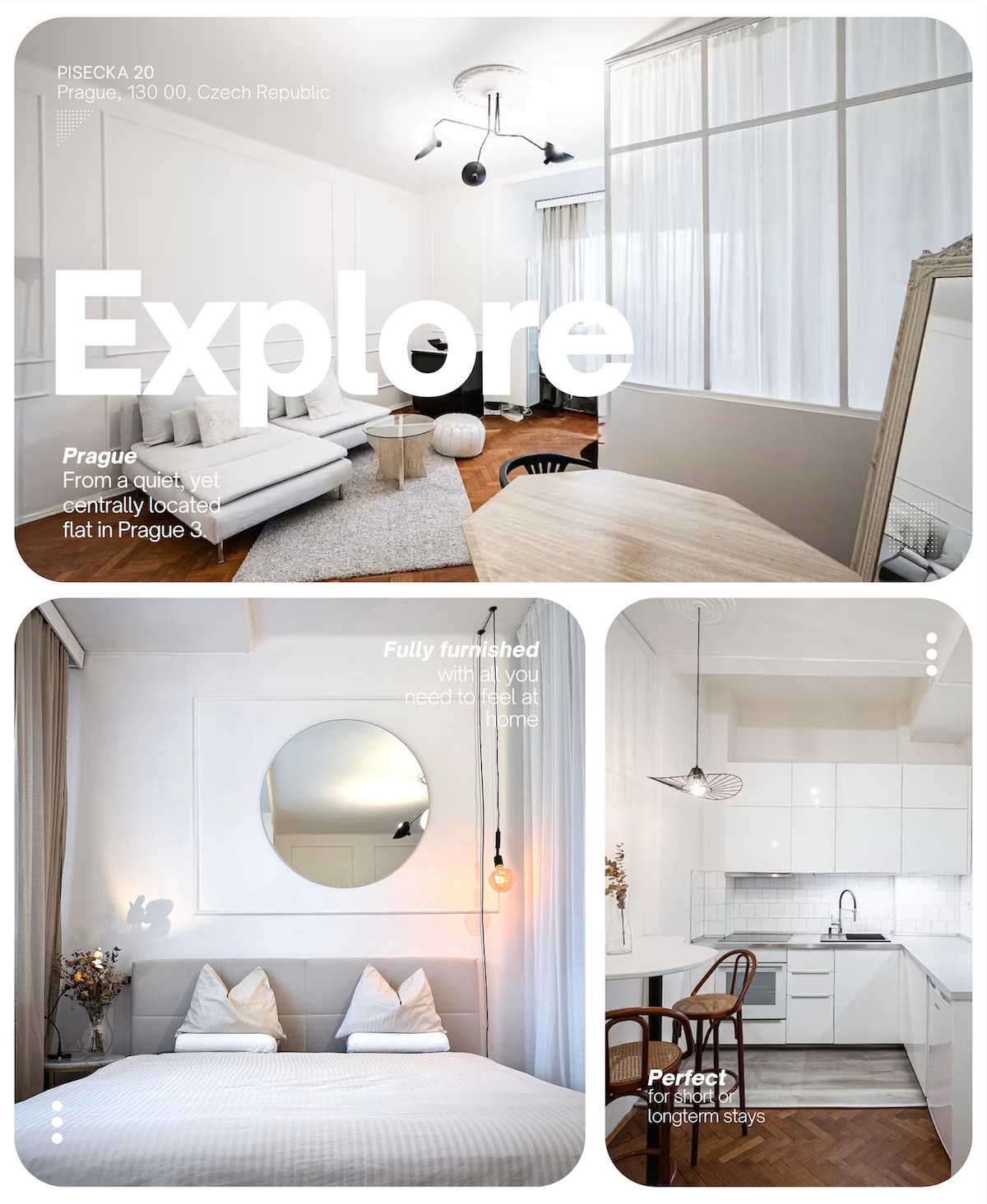 We've crafted our flat into a modern & neutral space, featuring plush and high-end furniture. The perfect balance of a tranquil atmosphere and the amount of natural light. As an extra touch, enjoy the privacy of your own In-Unit Sauna. Located in Vinohrady district, the best of Prague is at your doorstep. Explore the historic charm of Old Town and the dynamic energy of New Town, both within a 15-minute walk. Please be aware the building is being reconstructed until 30/11/2025