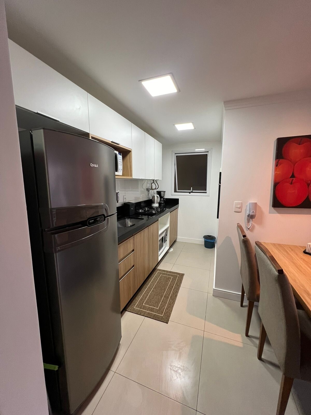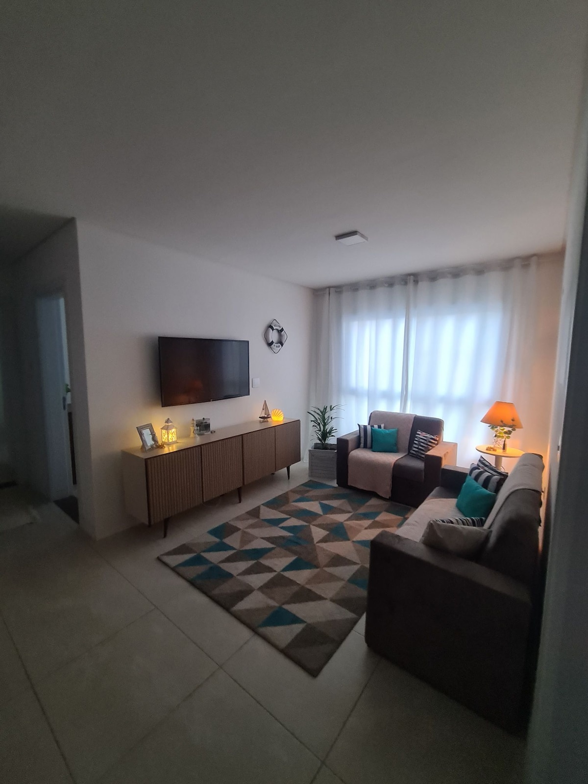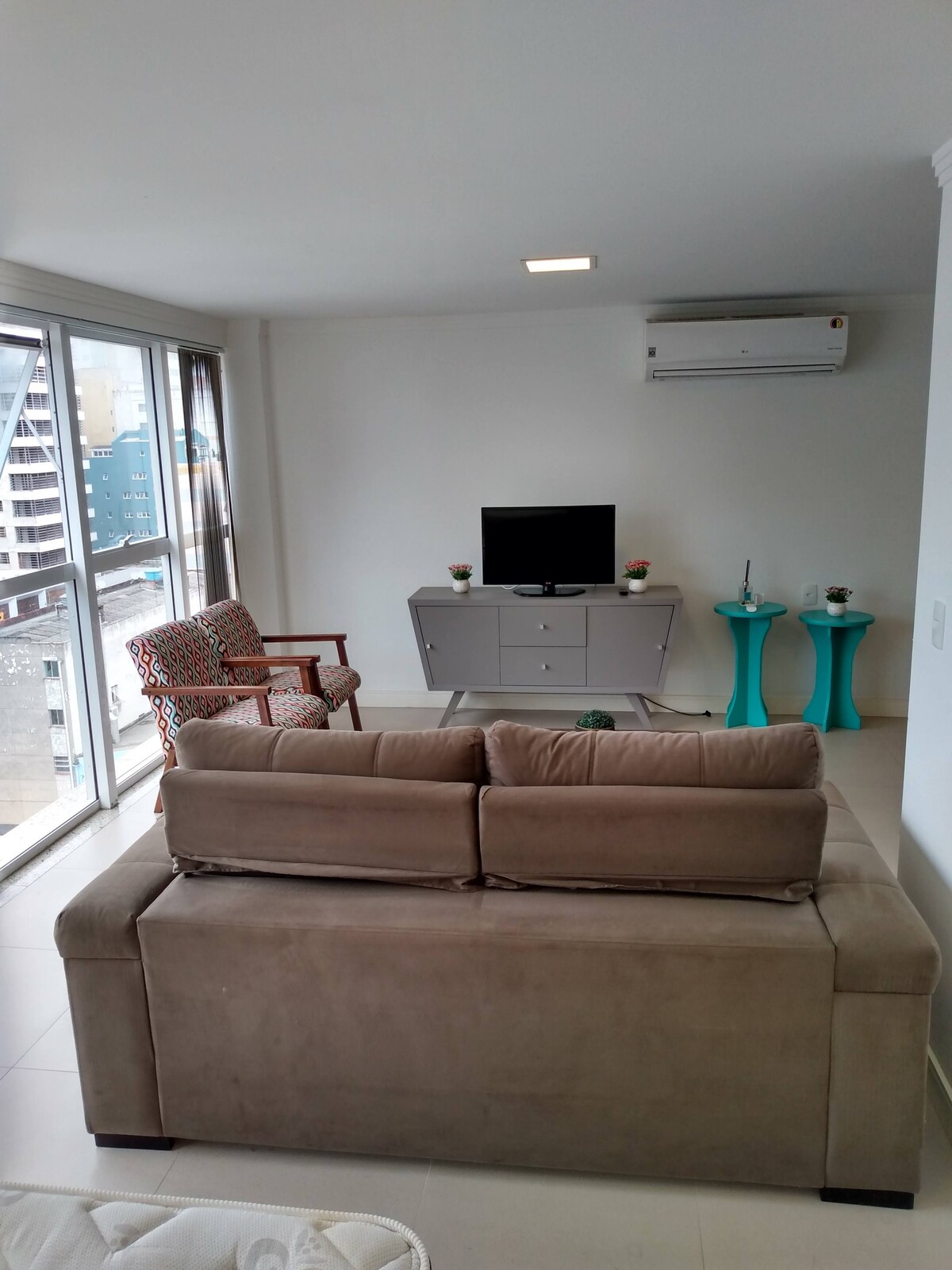 Complete apartment in the city center, close to markets, cinema, restaurants and shops. Less than 5 minutes from the sea! 😃 The apartment has a bedroom, living room, bathroom and kitchen/utility area, fully furnished and ready for use. In the living room, the apartment has a double-size sofa bed. Sea views from both the apartment and the terrace, which has a swimming pool, gym and leisure area. Also includes TV with Netflix and other streaming services (not included), barbecue and garage