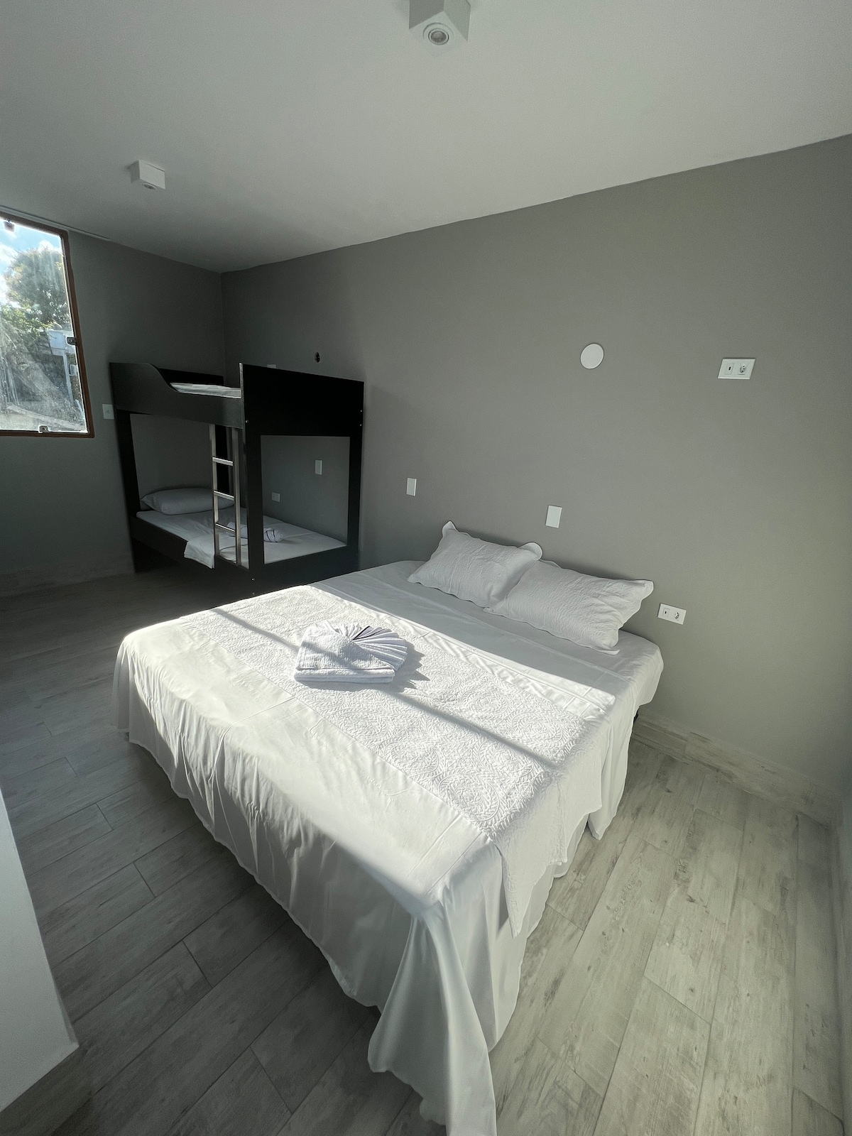 Hotel Room located in Delphin Beach Hotel, with room services (cleaning and towels), in front of Enseada beach, with 3 beds, 2 singles and 1 double. Bathroom, air conditioning, closets, minibar, microwave, Smart TV and Wi-Fi. It is allowed to use the swimming pool. The hotel also offers additional services, such as breakfast and parking (paid separately - not included in the daily rate). The region has many commercial establishments, restaurants and bars.