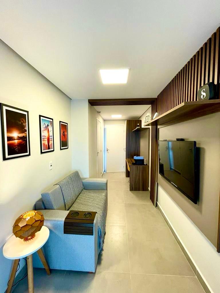 Modern apartment, all renovated with panoramic ocean views, simply stunning. Experience waking up to the sound of the waves. Great location in charming Morro do Maluf, easy access to Pitangueiras beach, close to the center, shopping, market and restaurants. It has a large living room with a balcony facing the sea, 2 en-suites with split air conditioning and a modern kitchen. 500 Mbps Wi-Fi It has 01 parking space. The building offers beach service⛱️ Welcome to our Home by the Sea 🌊⚓️