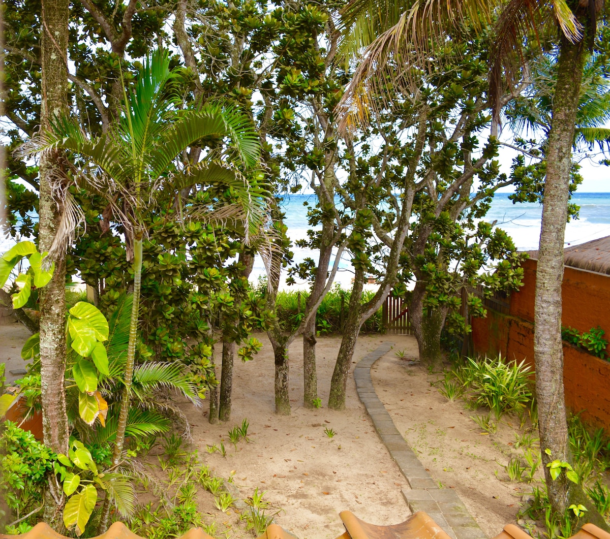 Beachfront house, very airy, high ceiling and "double doors" in all rooms, large garden facing the sea and fantastic view! Private access to the most valued corner of the beach. Perfect for families with children. Our house is 172m2, accommodating 10 people in 2 bedrooms, 1 large suite, bathroom/toilet, TV room with sofa bed and open kitchen, integrated with the outdoor room and large gourmet balcony facing the beach, laundry and parking on a 1200m2 plot.