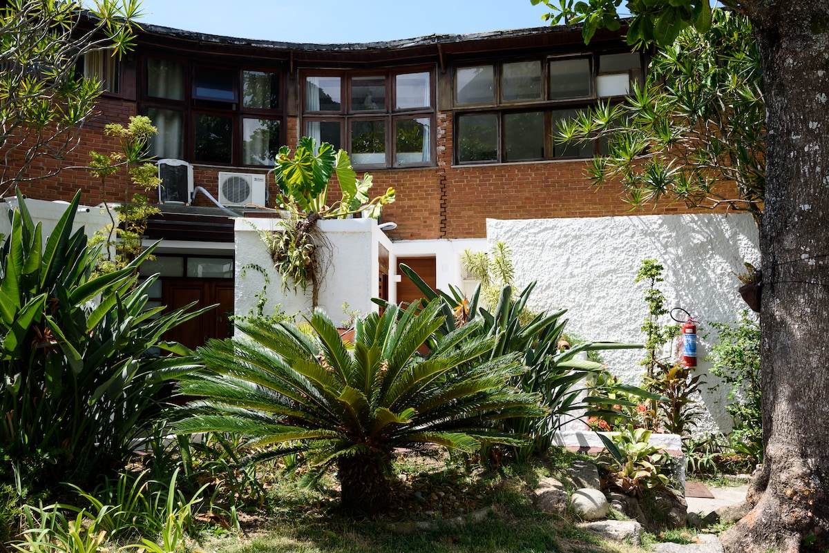 Casablanca 1 is a delightful studio apartment complete with bathroom and kitchen all for you, in total privacy, within a magnificent tropical garden, a 10-minute walk from two of the most beautiful beaches in Rio, Leblon and Vidigal. Leblon is Rio's most exclusive neighborhood, where bars and restaurants abound, while Vidigal is Brazil's poshest favela, famous for parties in the Bar da Laje and Mirante do Arvrão, offering the most spectacular views of the city.