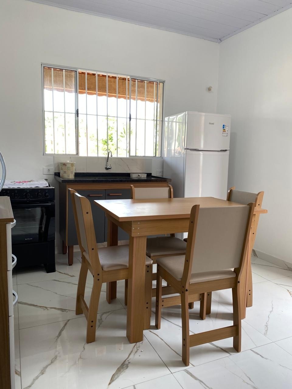 Located in Jureia, 30 minutes from Iguape. Very cozy house, suitable for people who want to enjoy with friends or even family. The house has everything. My house is very close, and I am available to help if necessary. It is a 5-minute walk to downtown and 10 minutes to the beach. The beach is 18 km long and has a beautiful rocky shore, waterfalls and the river meets the sea. House fully equipped with TV, electric showers, beds and full kitchen.