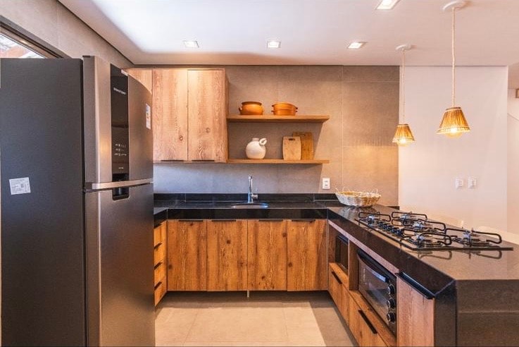 The little house in the village is located in the Vila do Chapéu condominium, with all the security and convenience of a concierge and common area with a beach tennis court, skate park, playground and gym. The little house has a complete and private leisure area, with a swimming pool and an integrated gourmet area with a fully equipped kitchen for those who like to cook. The suites are super comfortable, with premium mattresses and bedding to provide the comfort of a nice home.