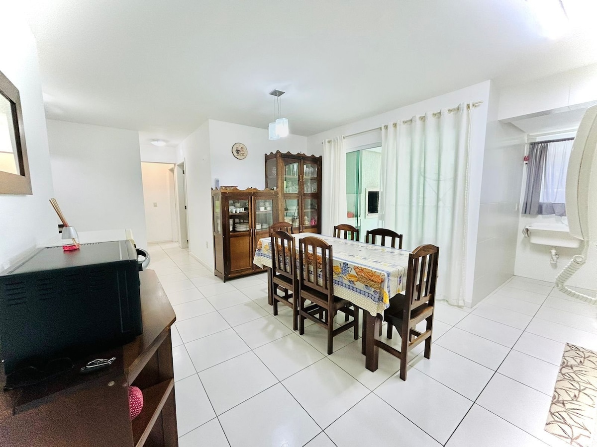 Your family will be close to everything when staying in this well-located place in downtown Bombinhas, one of the most beautiful beaches in the region. It has 3 bedrooms with split air conditioning, one of them a suite, a social bathroom, a living room with TV, a full kitchen with all the necessary utensils, a service area with a washing machine, a balcony with a barbecue, a parking space, a safe building, with cameras, janitorial services, and an elevator. Note: We do not provide bed and bath linens.