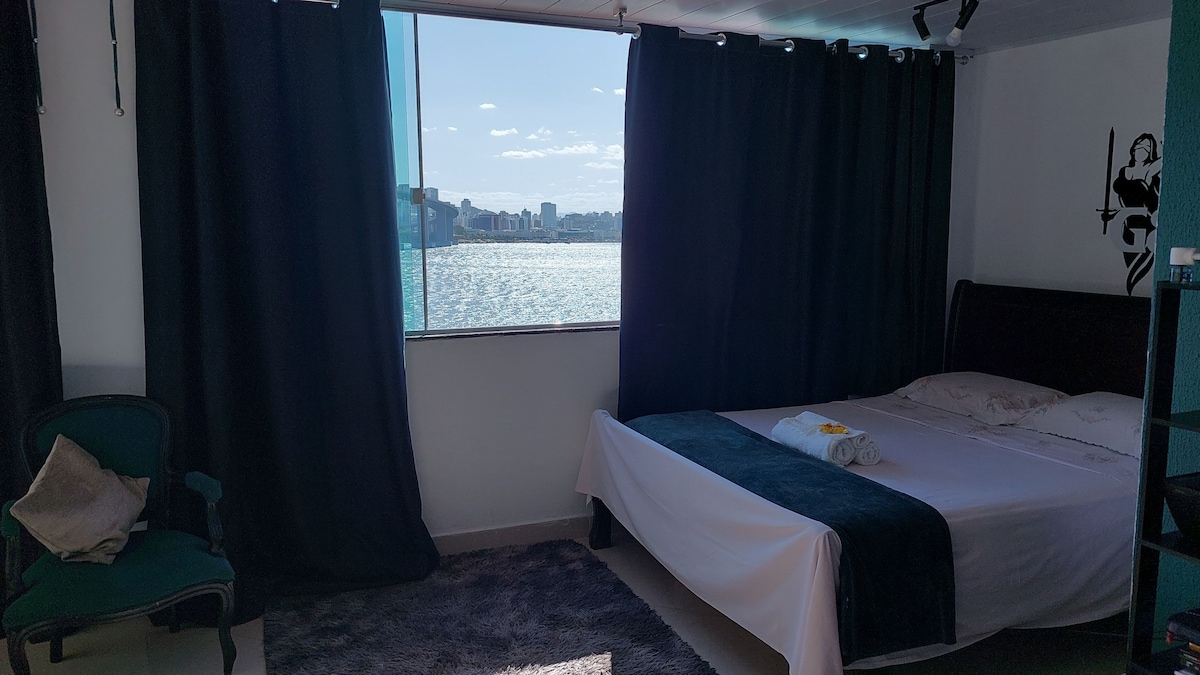 Enjoy the sounds of nature when you stay in this unique place. Facing the sea, with the most beautiful view you can experience, tranquility and at the same time close to the center of Vila Velha, close to the beach, located on the hill of Moreno, the city's tourist attraction. Natural ventilation, it has an equipped kitchen, overlooking the third bridge. Come and stay and live this experience. (We do not allow parties)