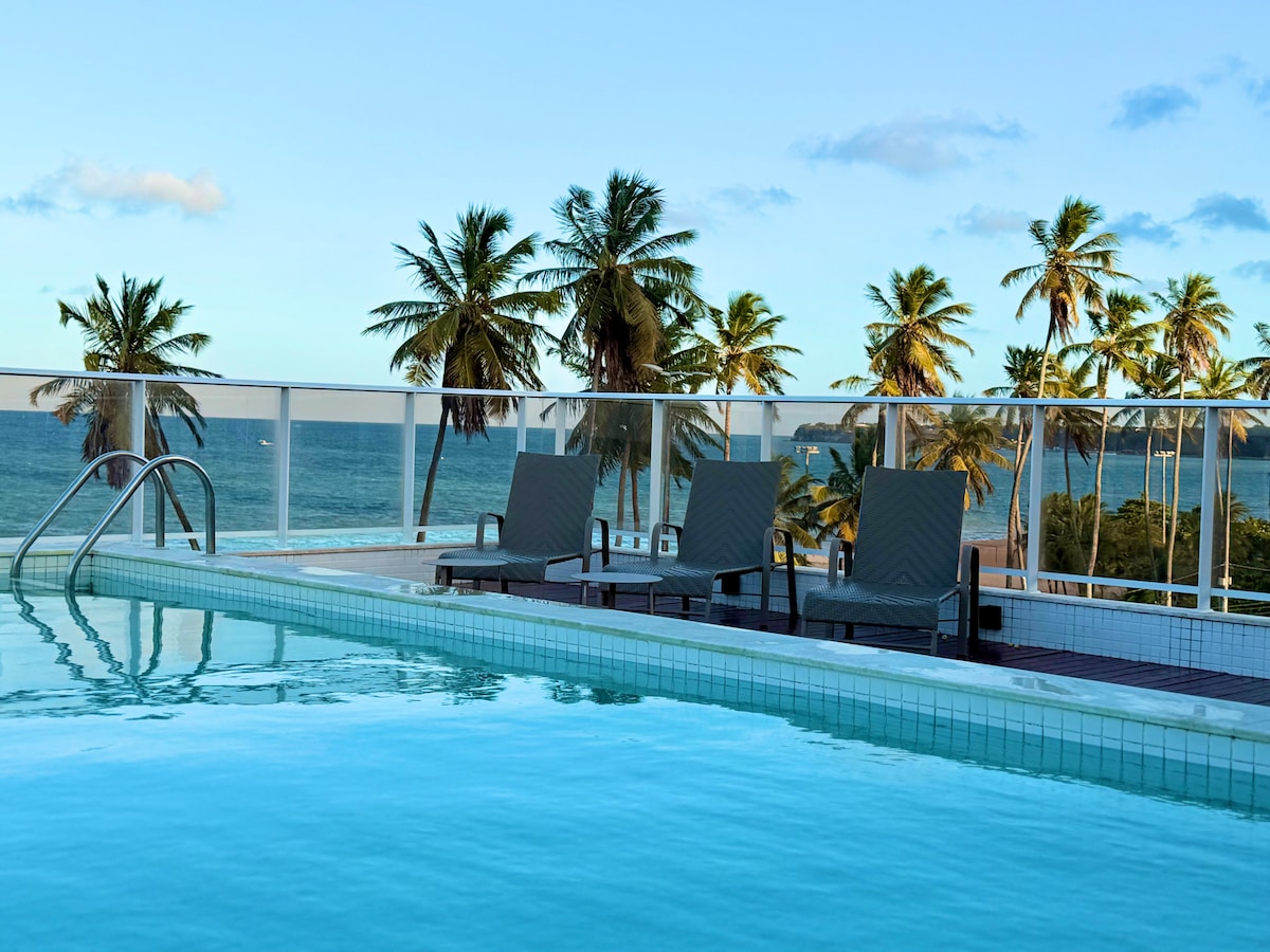 Enjoy the pool and beach in the best of Cabo Branco 🏖 30 meters from the Cabo Branco waterfront 🍤 2 min. from Bar do Cuscuz 🚙 ✈️ 30 minutes from the airport 🚙 Infinity 🌅 pool to the easternmost point of the Americas Nearby 📌 restaurants and cafeterias 🔸 2 air-conditioned bedrooms with double bed and 32” TV Comfortable 🔸 sofa bed (D45 foam) 🔸 Bed and bath linens 🔸 Wi-Fi 🔸 1 58” Smart TV in the Living Room 🔸 Cooktop 🔸 Microwave 🔸 Fridge 🔸 Kitchen utensils 🔸 1 parking space 🔸 Pay-per-use laundry